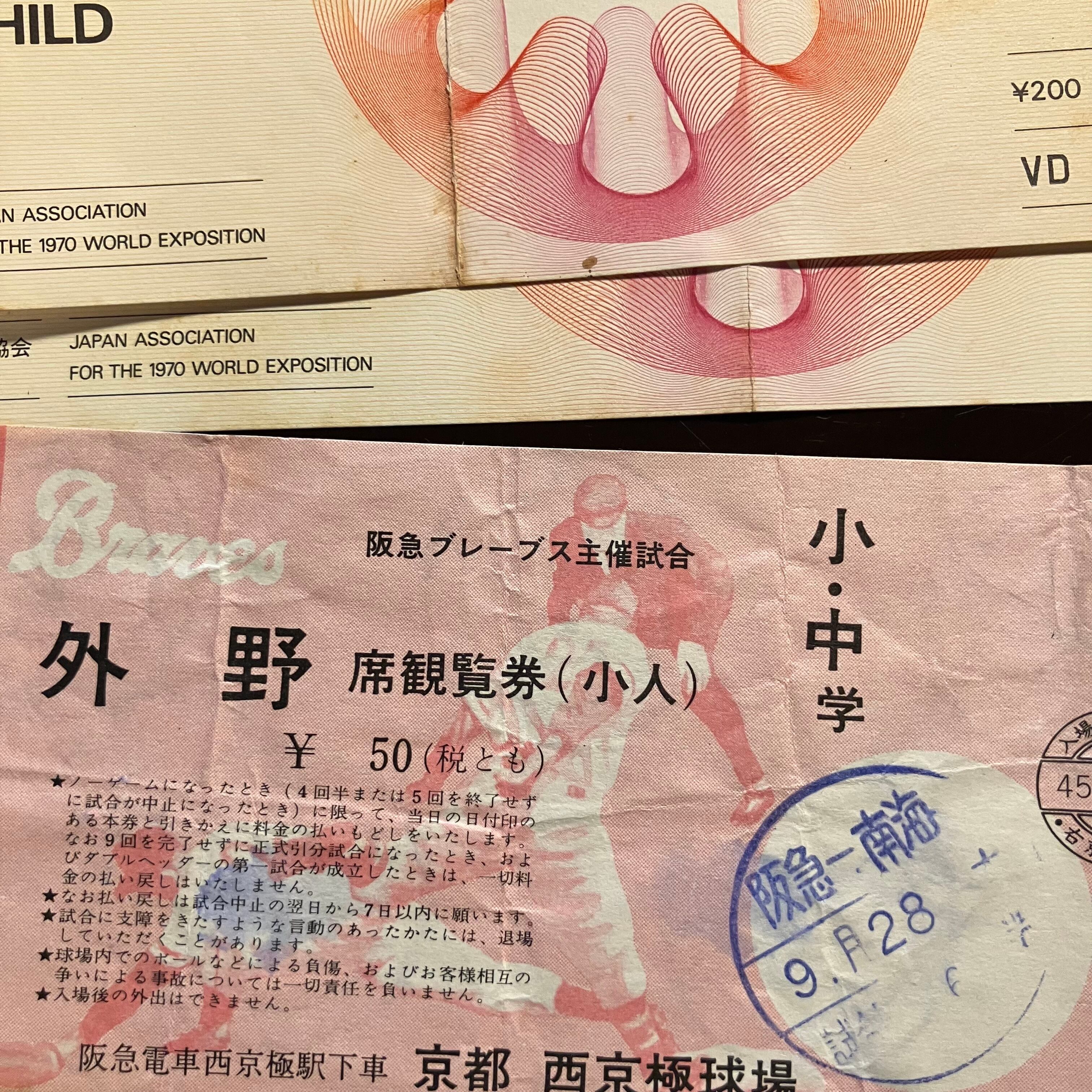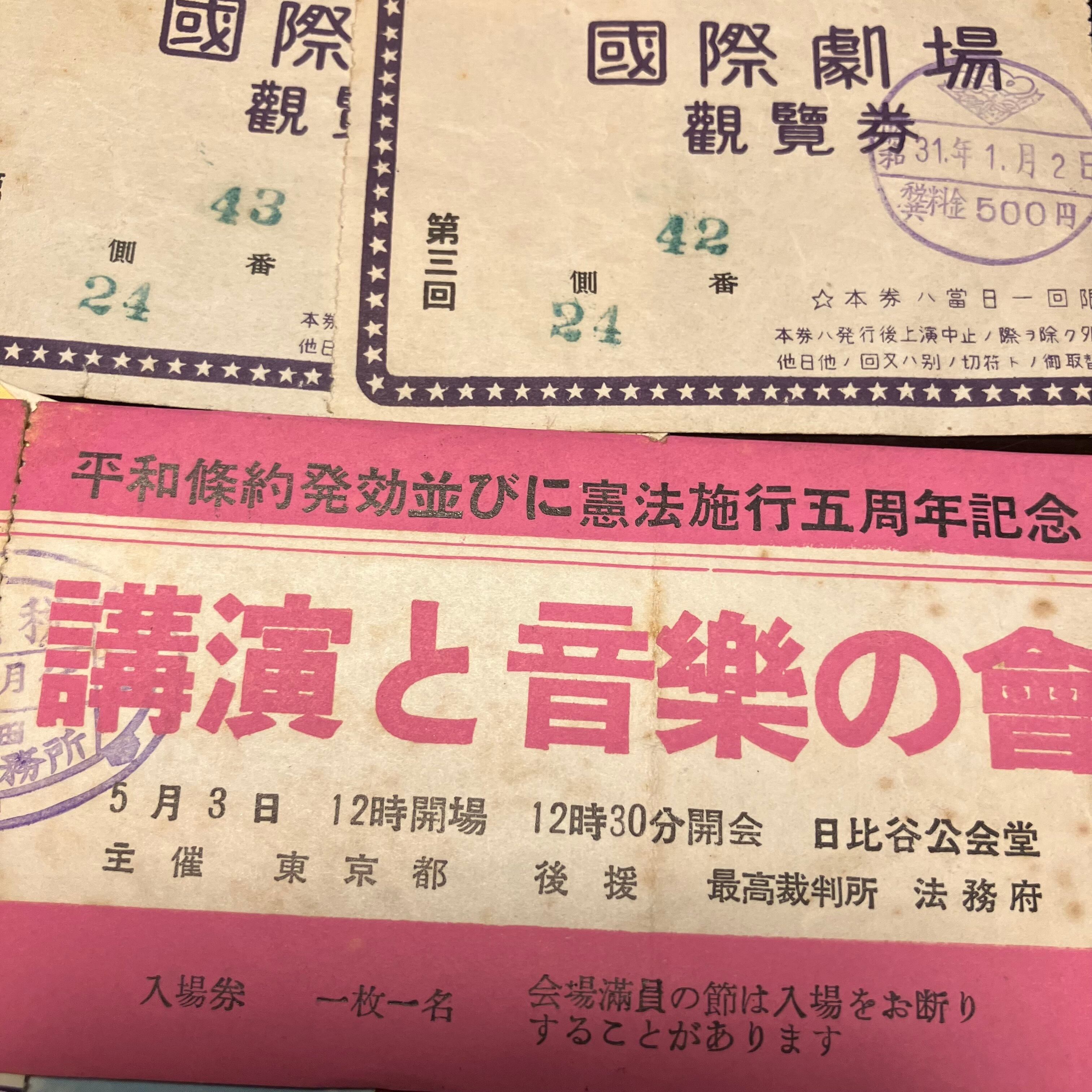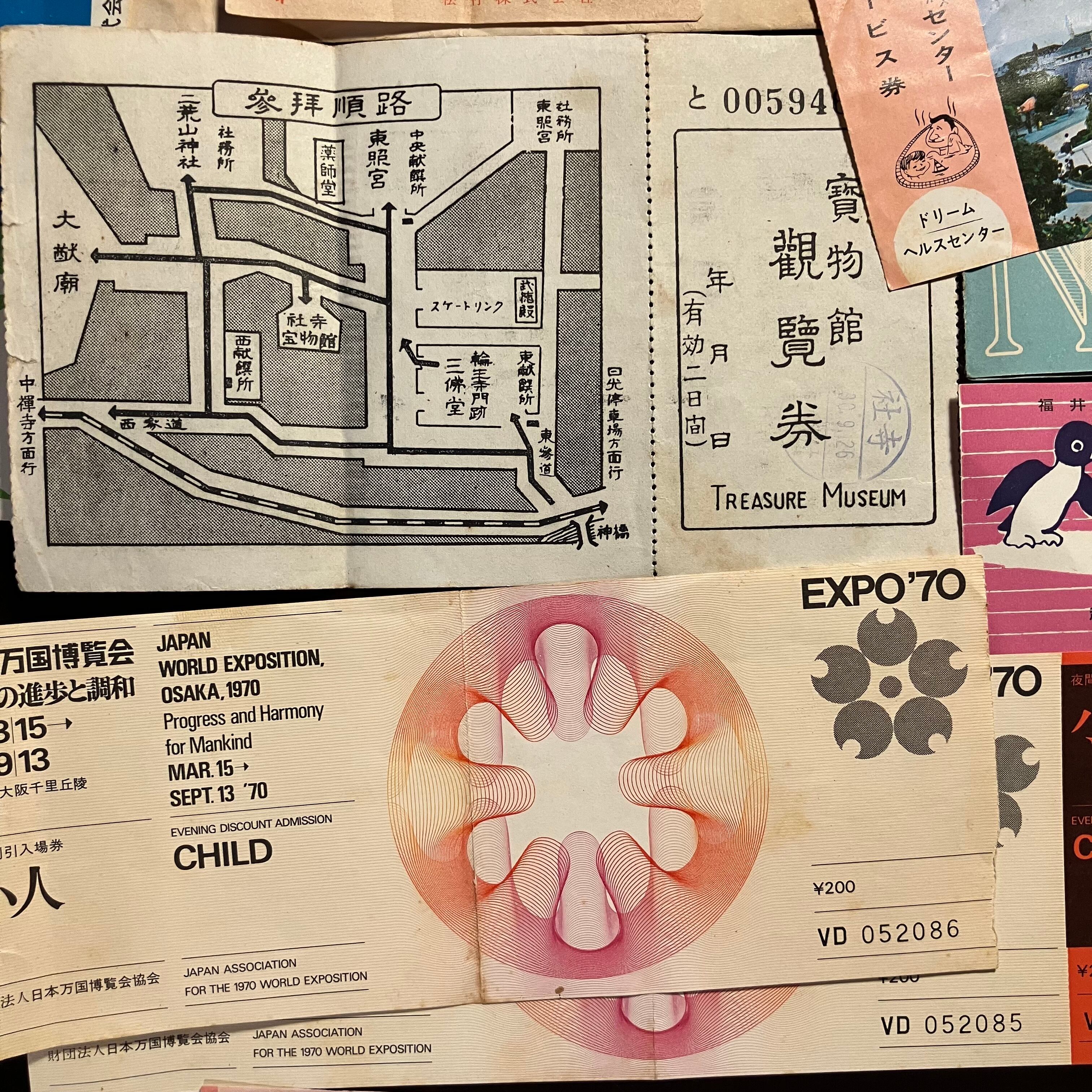 東京都交通局景品付き回数券、非売品御招待券、阪急ブレーブス主催試合外野席観覧券(西京極球場)、阿寒水族博物館、矢沢永吉、國際劇場観覧券、‘70大阪万博入場券、越前松島水族館入場券、日本劇場指定席入場券、ドリームランド入園券、松竹会館開場記念ラッキーカード、有楽座指定席入場券