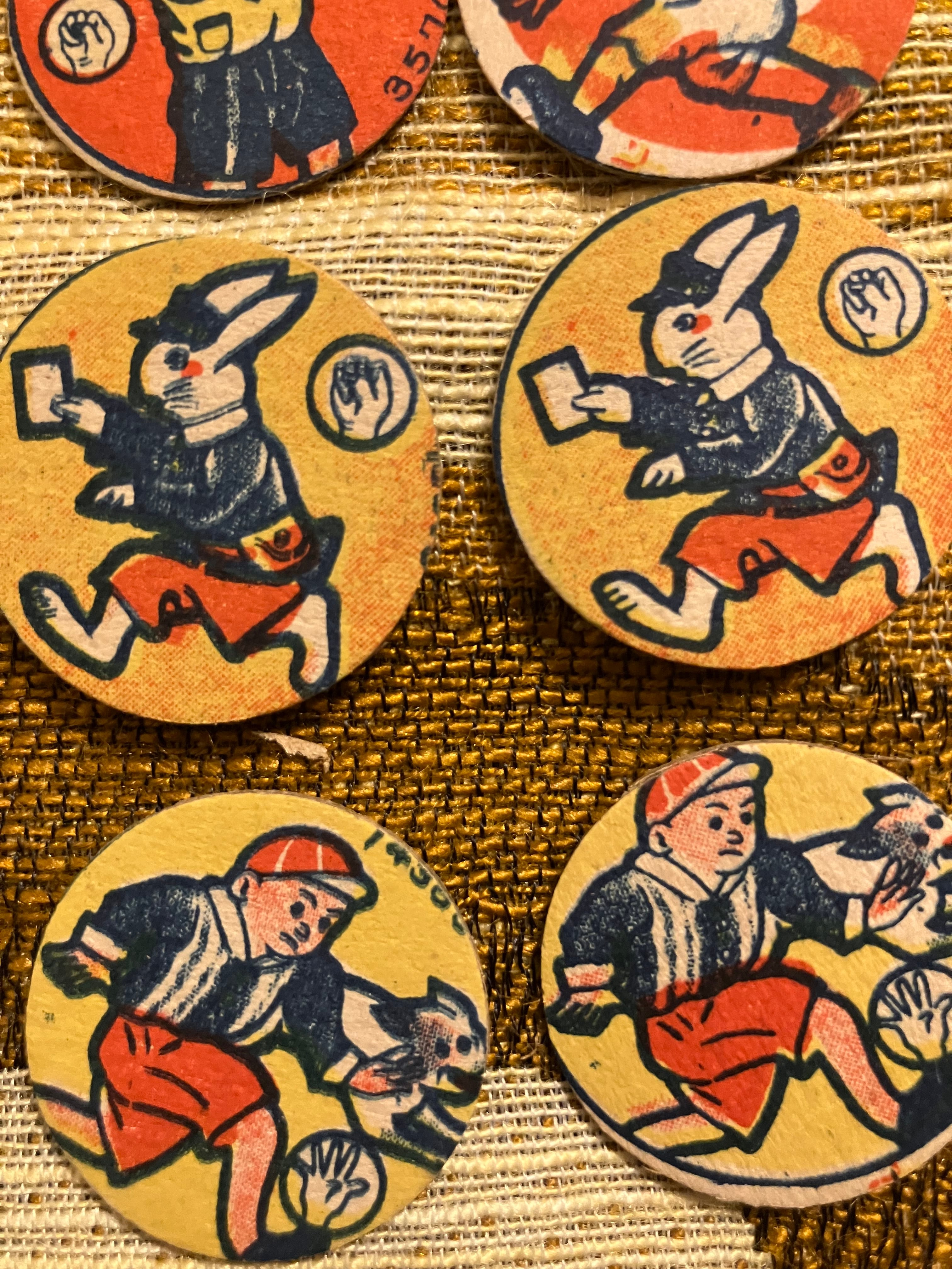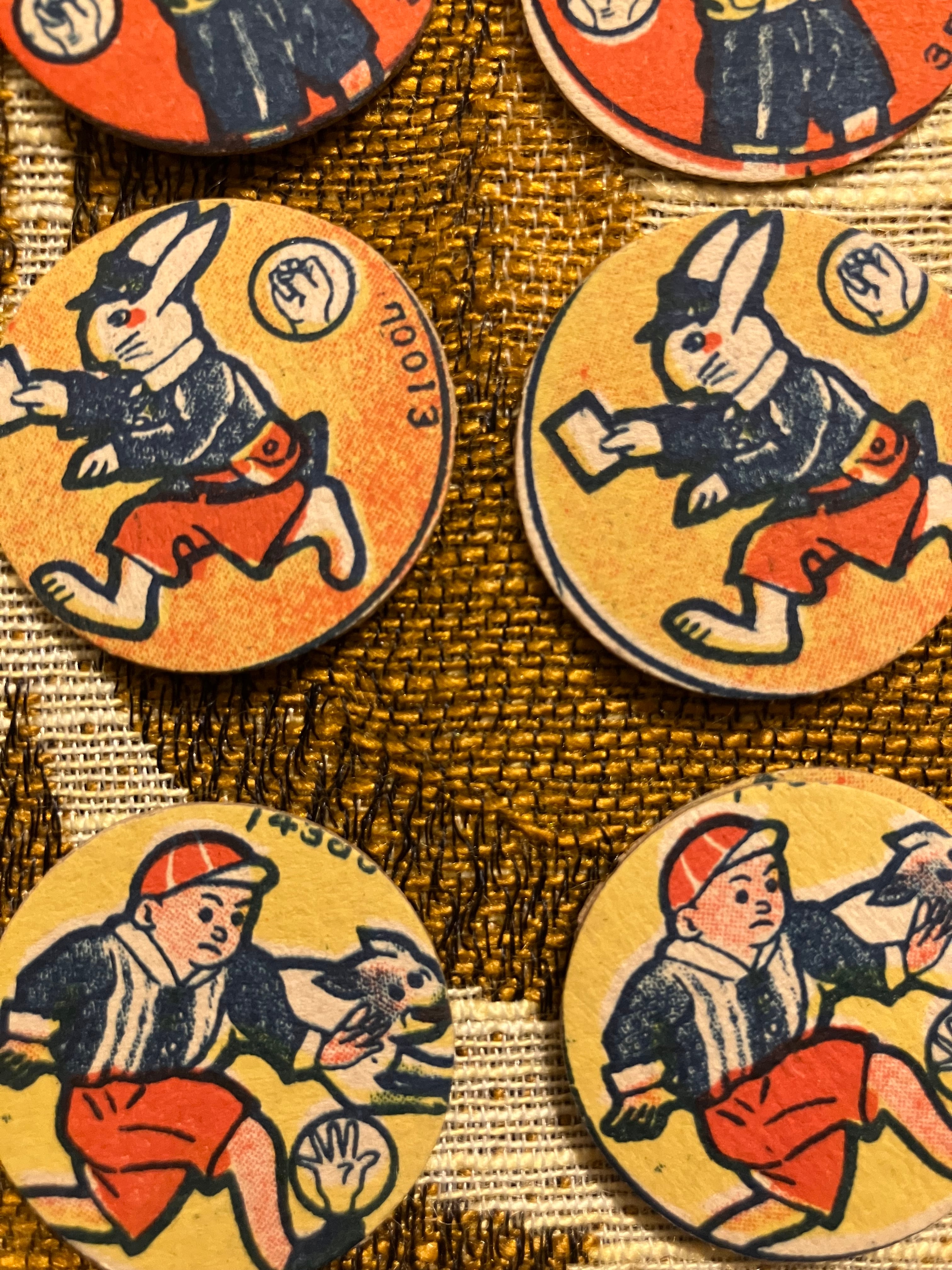 ・・おもちゃや置き物は、当時の基準で作られた、かなりの経年品です。素材や安全性の面で、お子様が実際に遊ぶには危険です。必ず、大人の方のコレクションとしてお考えください。