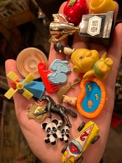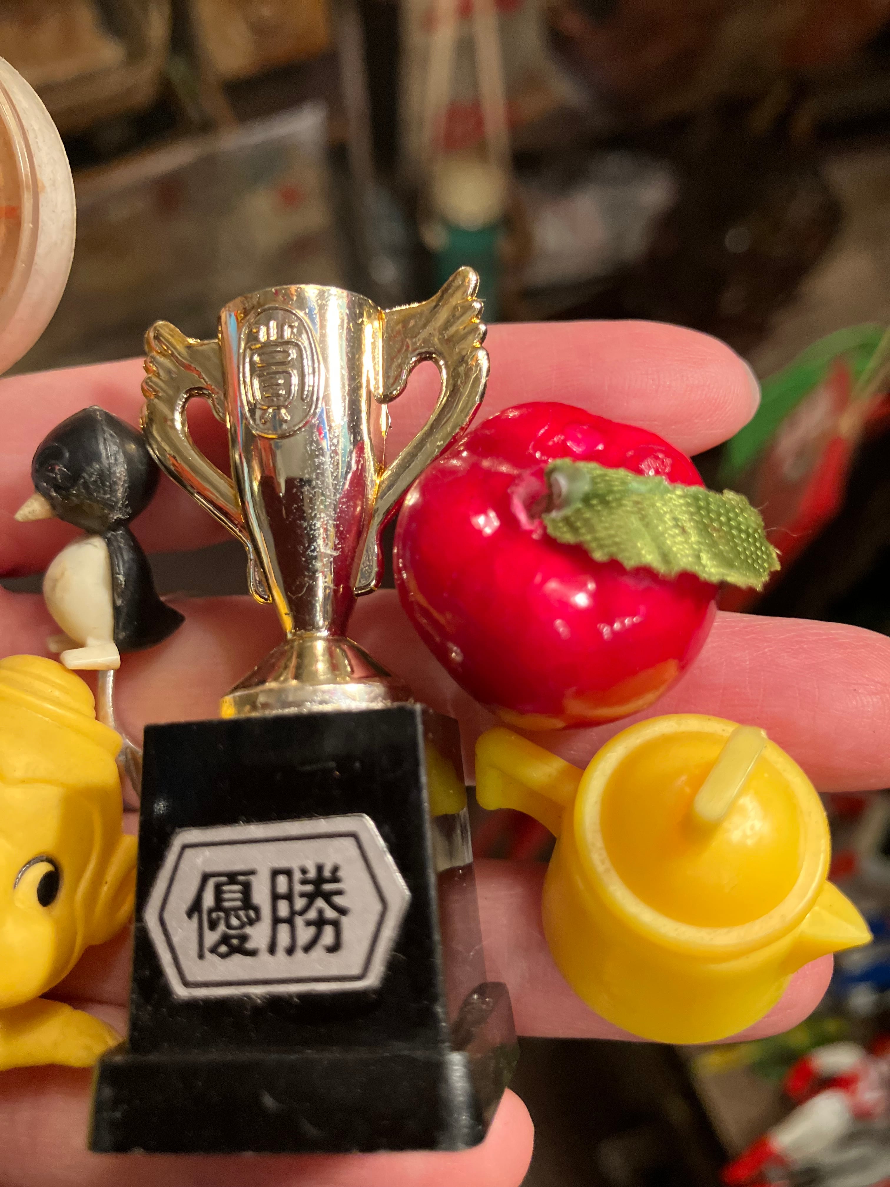 ・・おもちゃや置き物は、当時の基準で作られた、かなりの経年品です。素材や安全性の面で、お子様が実際に遊ぶには危険です。必ず、大人の方のコレクションとしてお考えください。