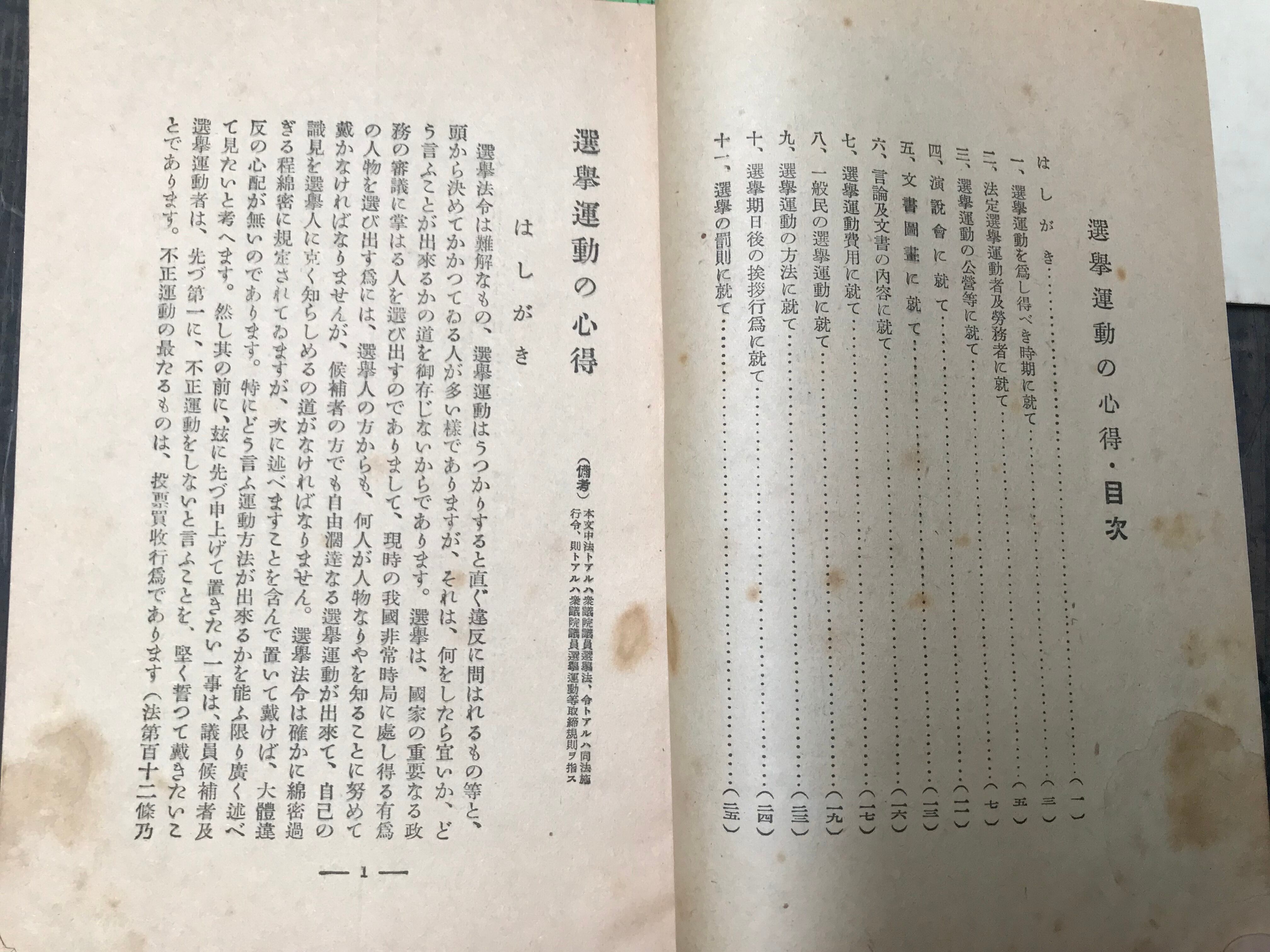 ・「選挙運動の心得」約12.5×18.5センチ