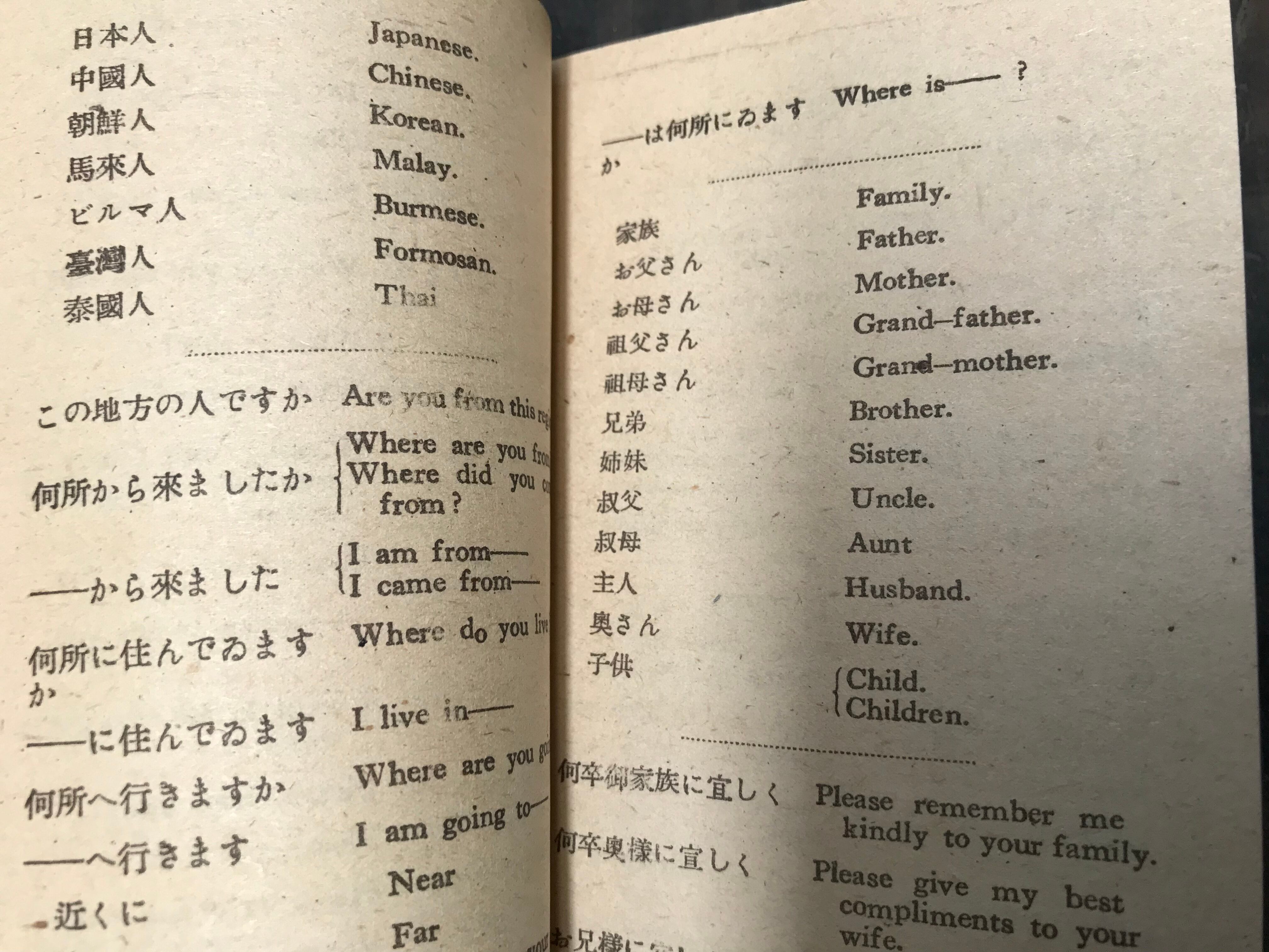 終戦3ヶ月後の昭和20年11月、西日本新聞社発行です。敗戦後、町にいきなりアメリカ人が増える状況での危機感が想像できる豆本です。
