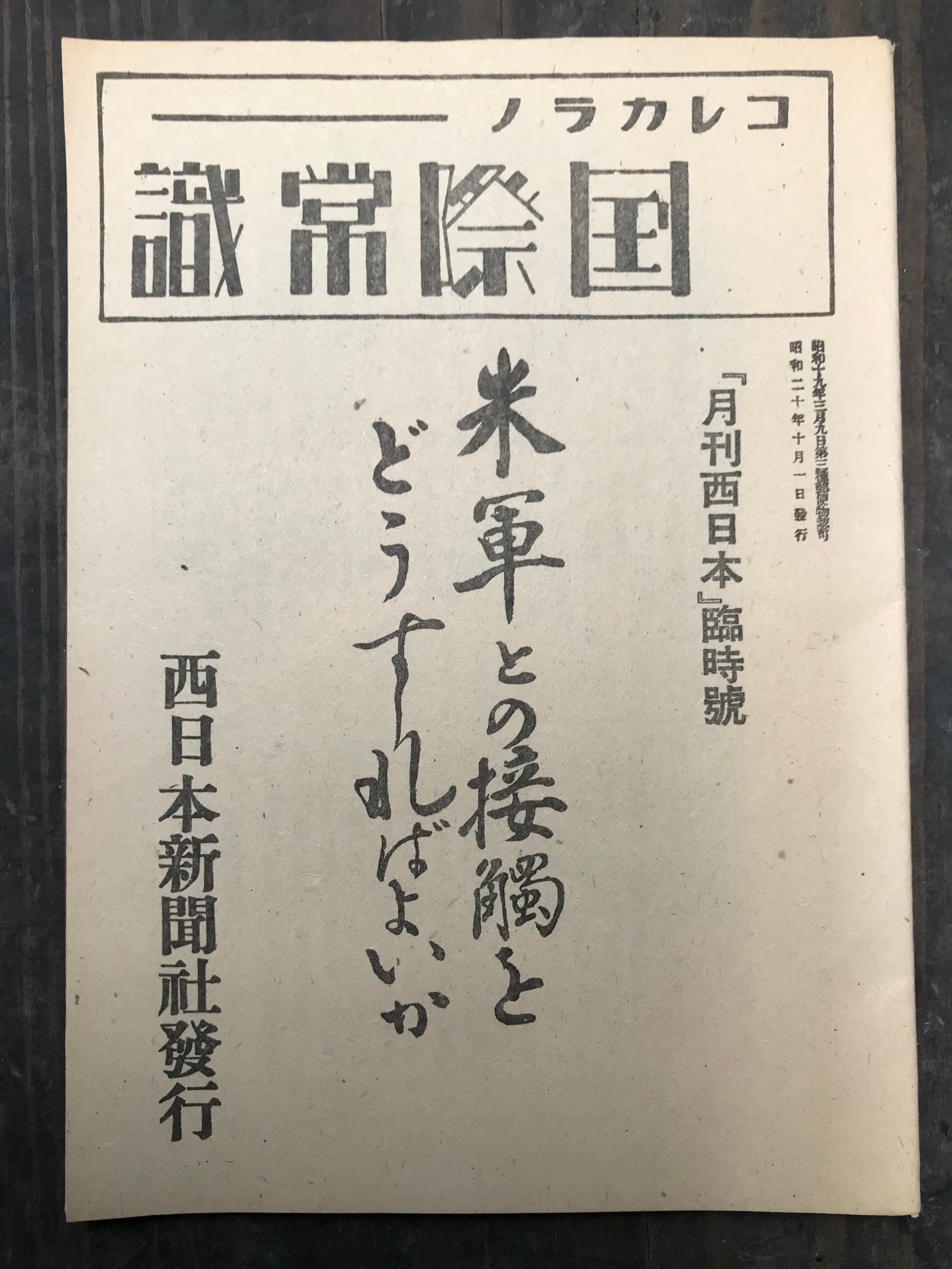昭和20年10月 月刊西日本臨時号「コレカラノ国際常識 米軍との接触をどうすればよいか」西日本新聞社発行です。