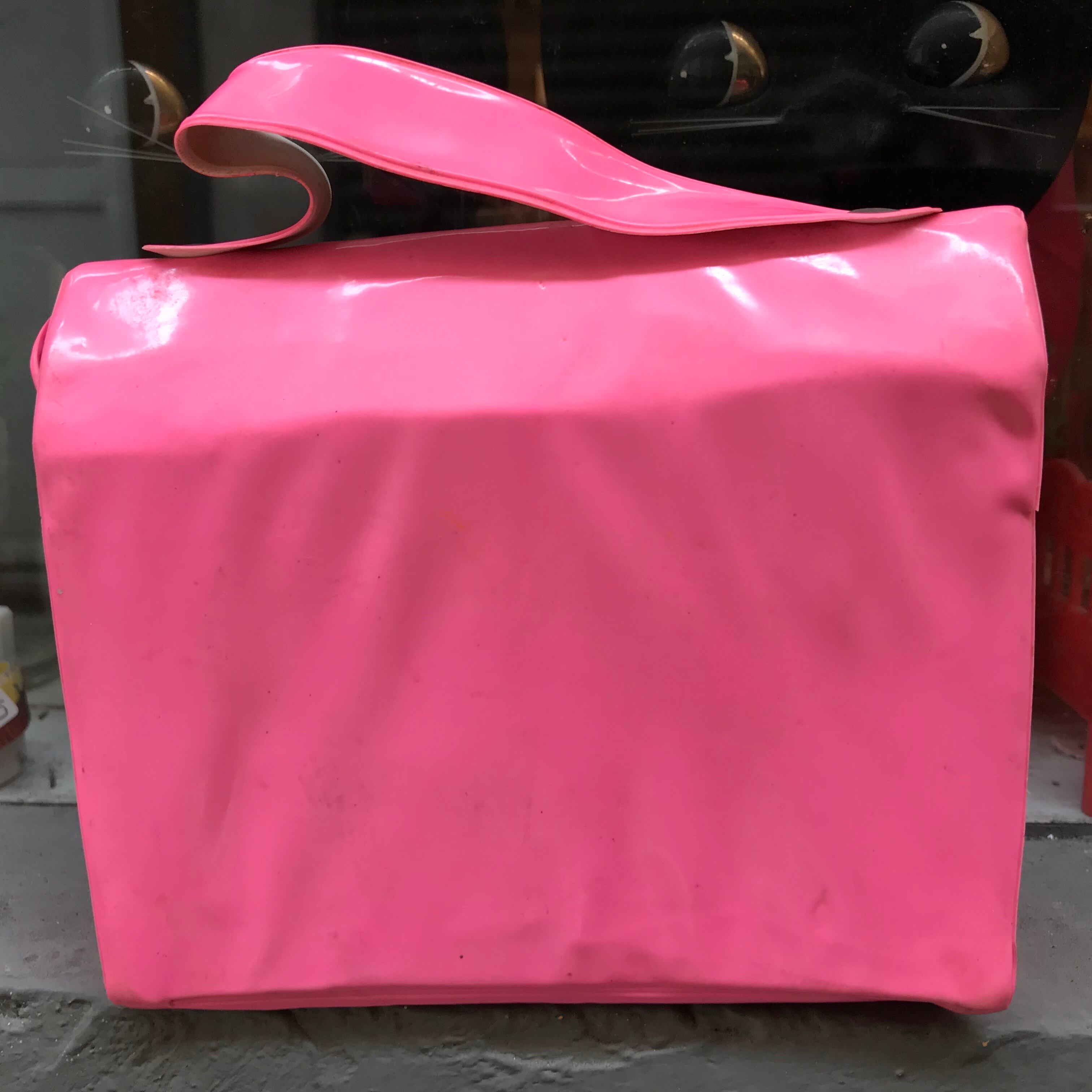 かなり可愛いペン画のペコちゃんお菓子バッグです。不二家レストランのレジ周りなどで売られていたものです。