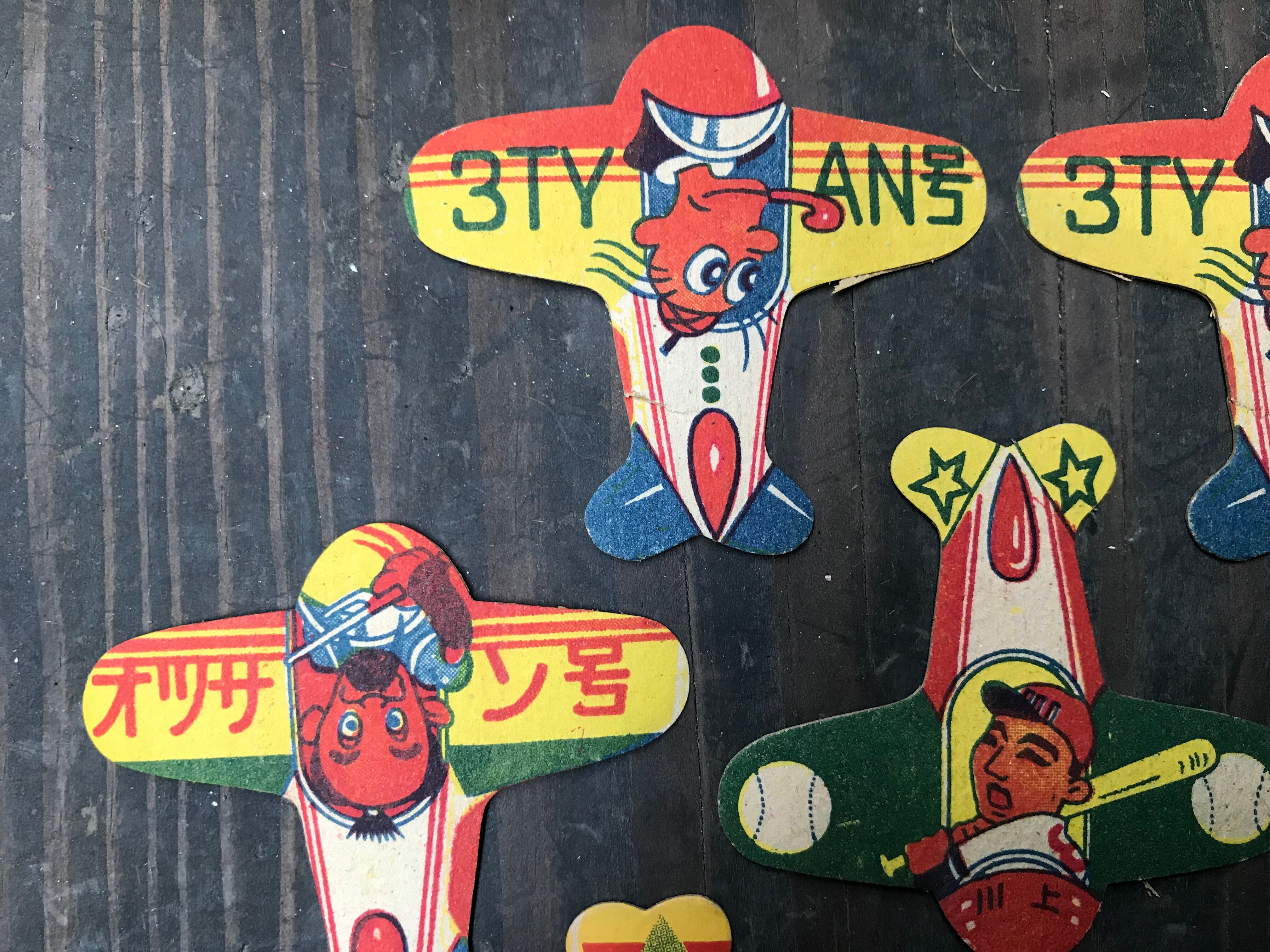 古い!飛行機めんこ14枚セット(丹下左膳・川上選手など)昭和 レトロ 駄玩具