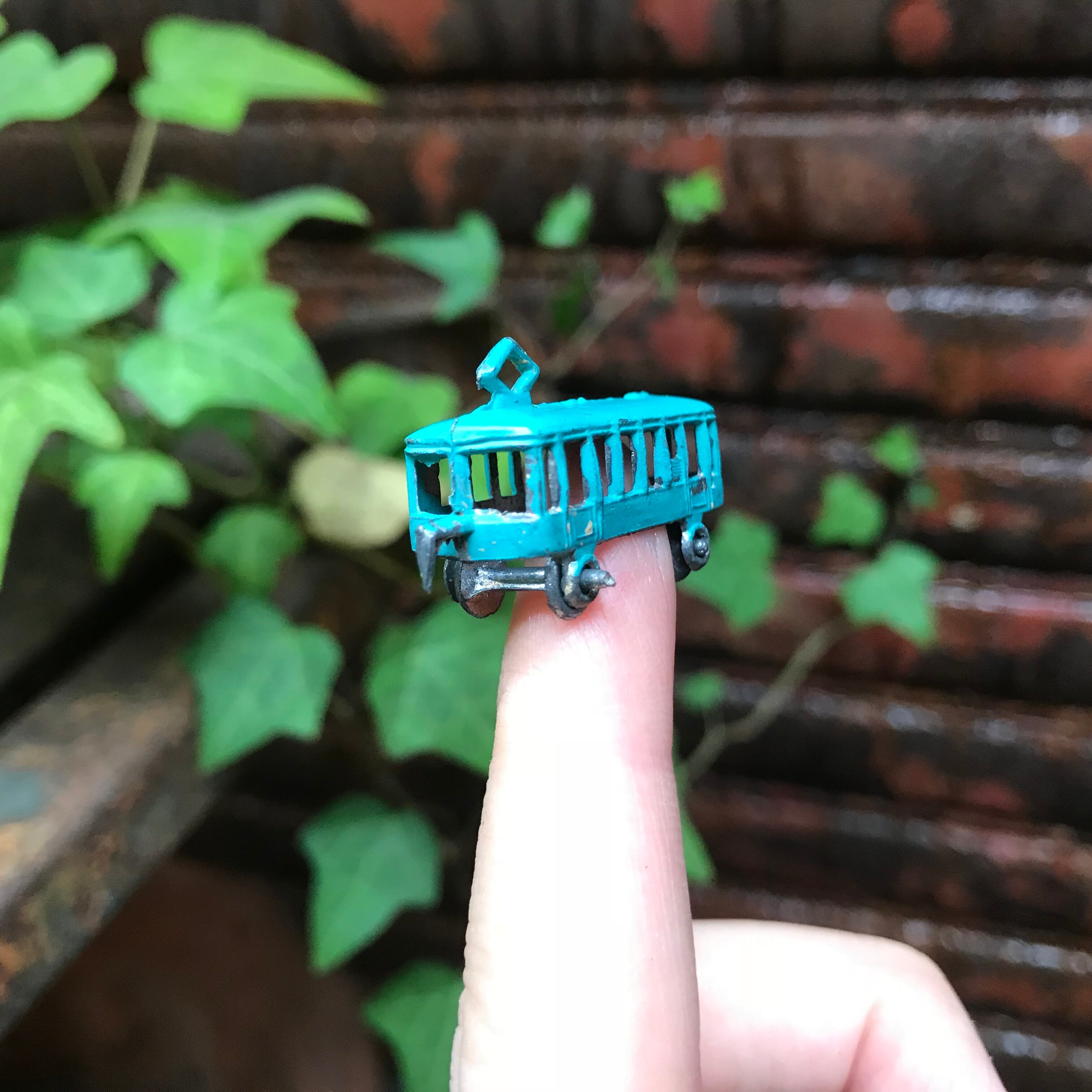 昭和初期 アンチモニー「電車(水色)」約1.3×2×4センチ 古くて小さくて可愛いおもちゃ
