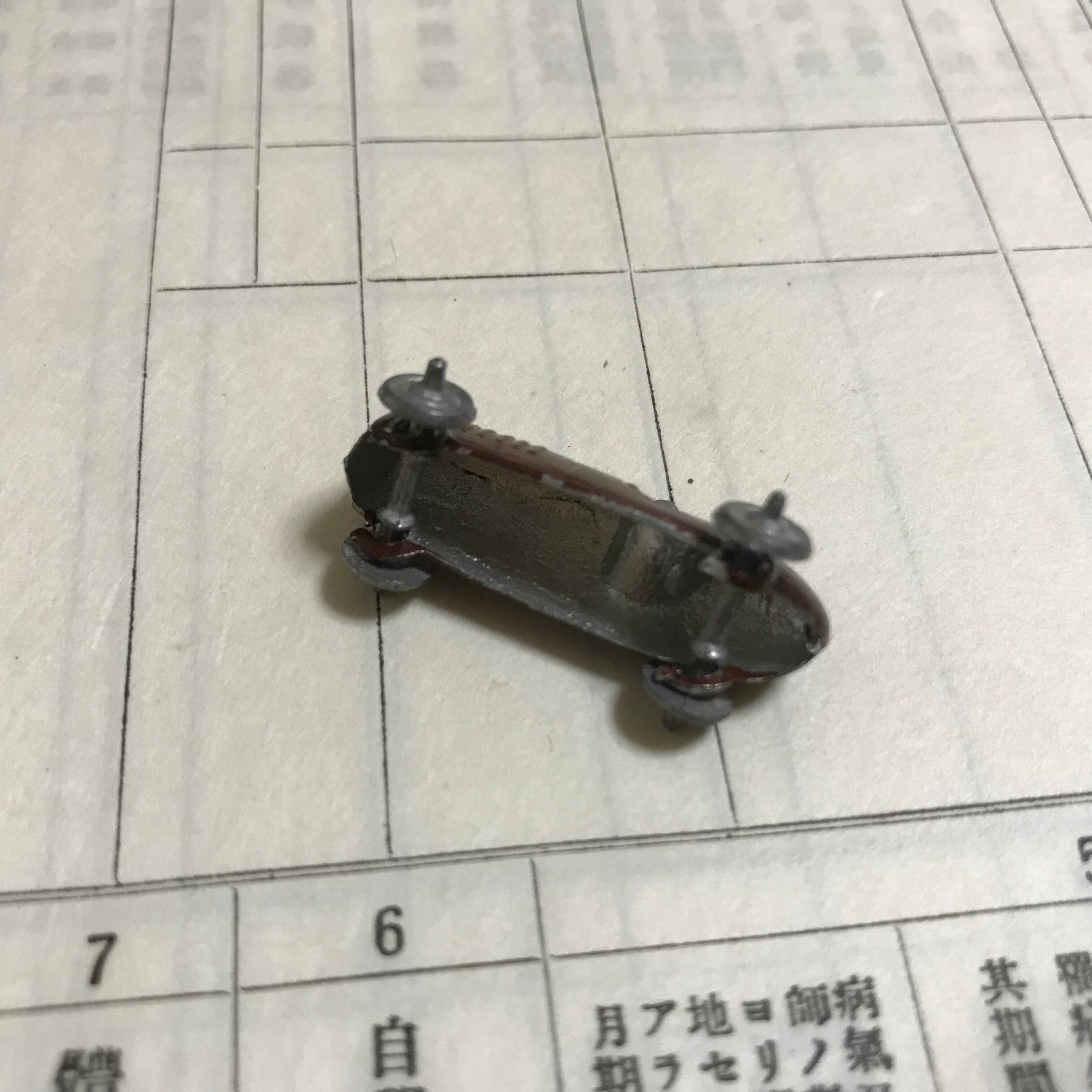 昭和初期 アンチモニー「カーレース(茶)」約1.8×1.8×3.3センチ 古くて小さくて可愛いおもちゃ