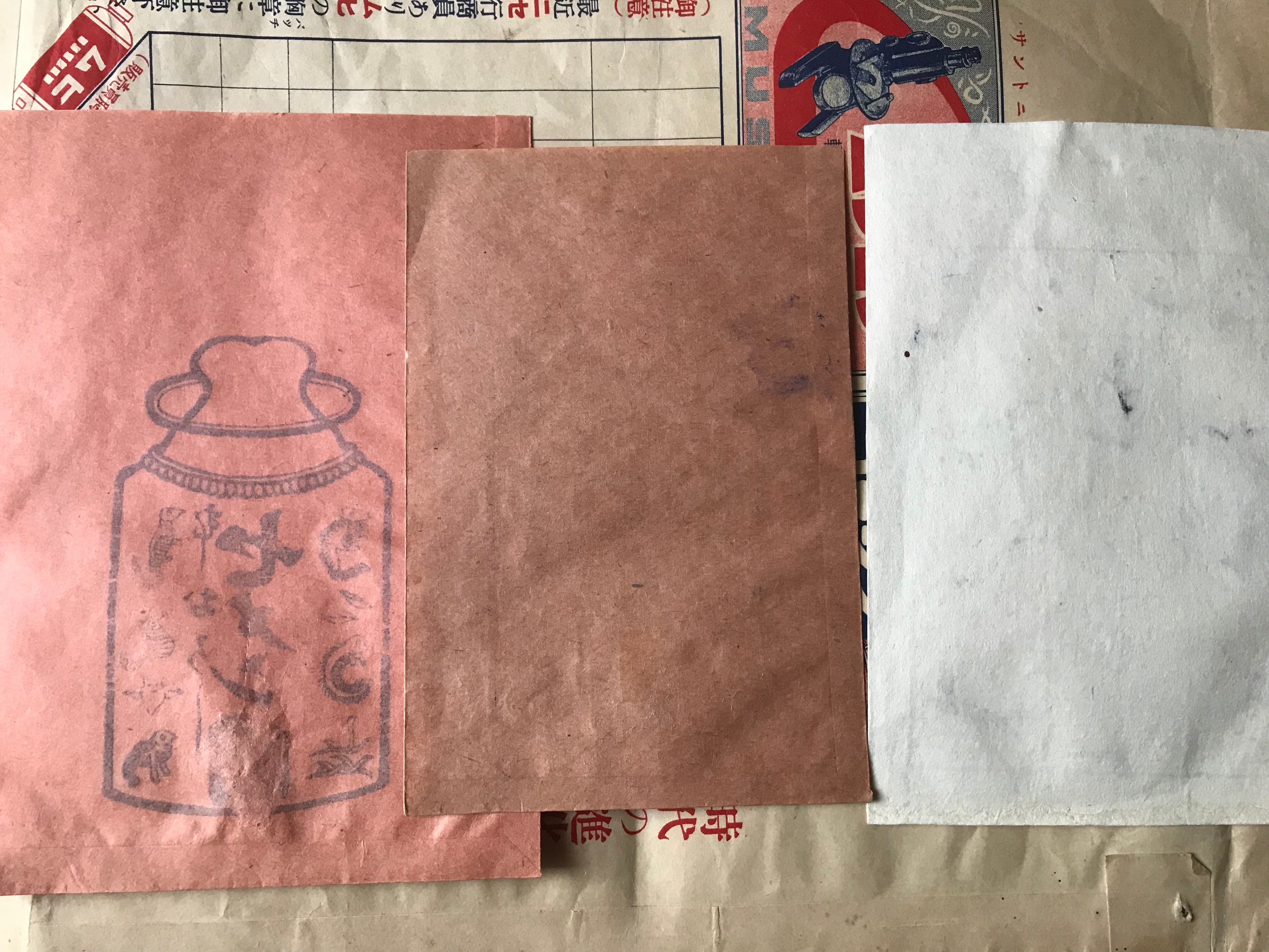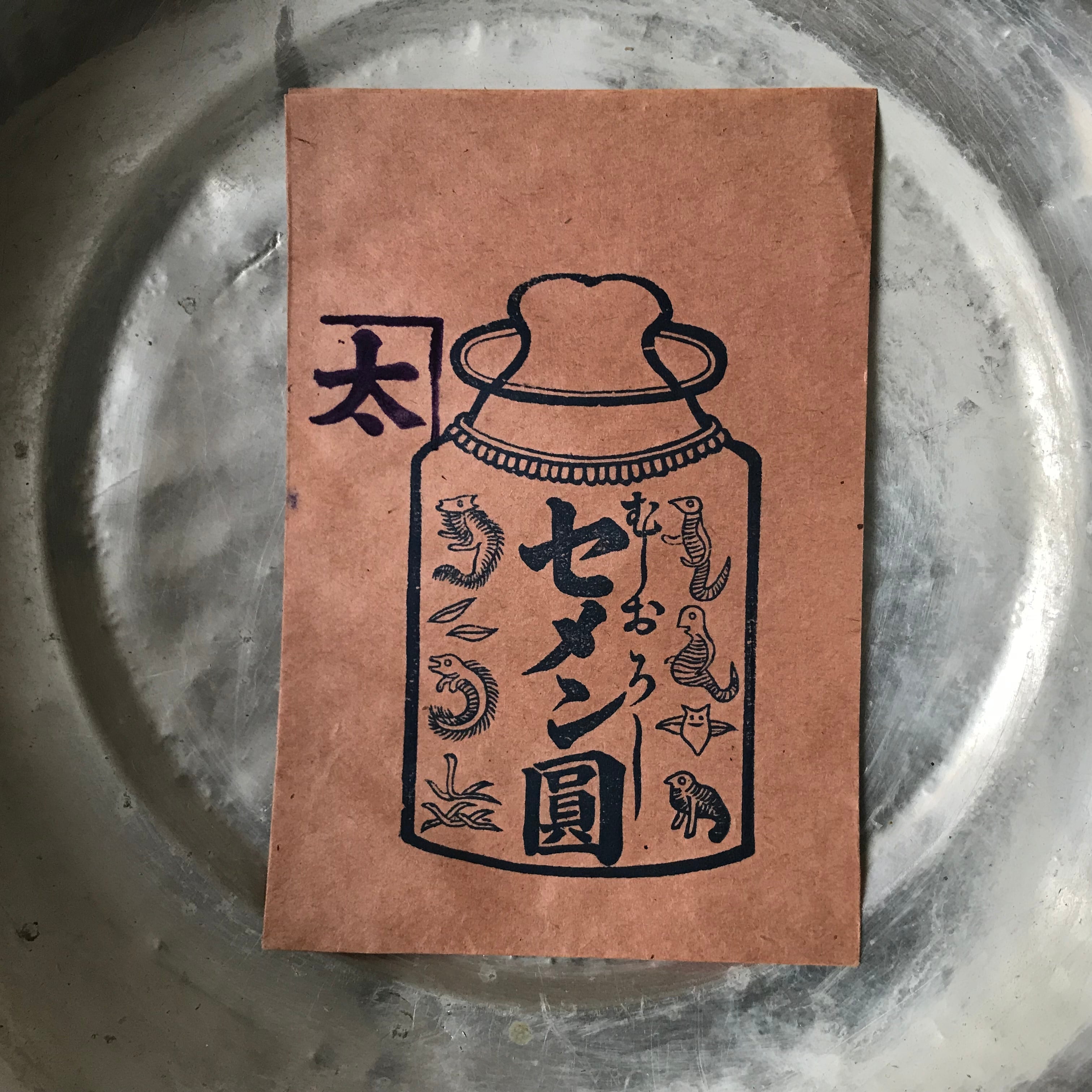 寄生虫の絵が怖い!戦前の虫下し薬袋「セメン圓」3枚セット