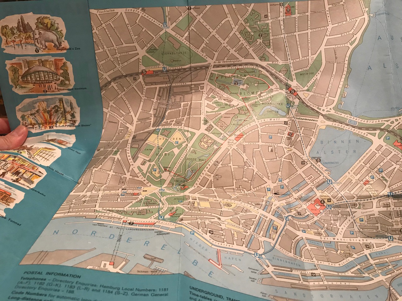 ドイツ ハンブルクの地図 船のイラスト入り 約42×59センチ