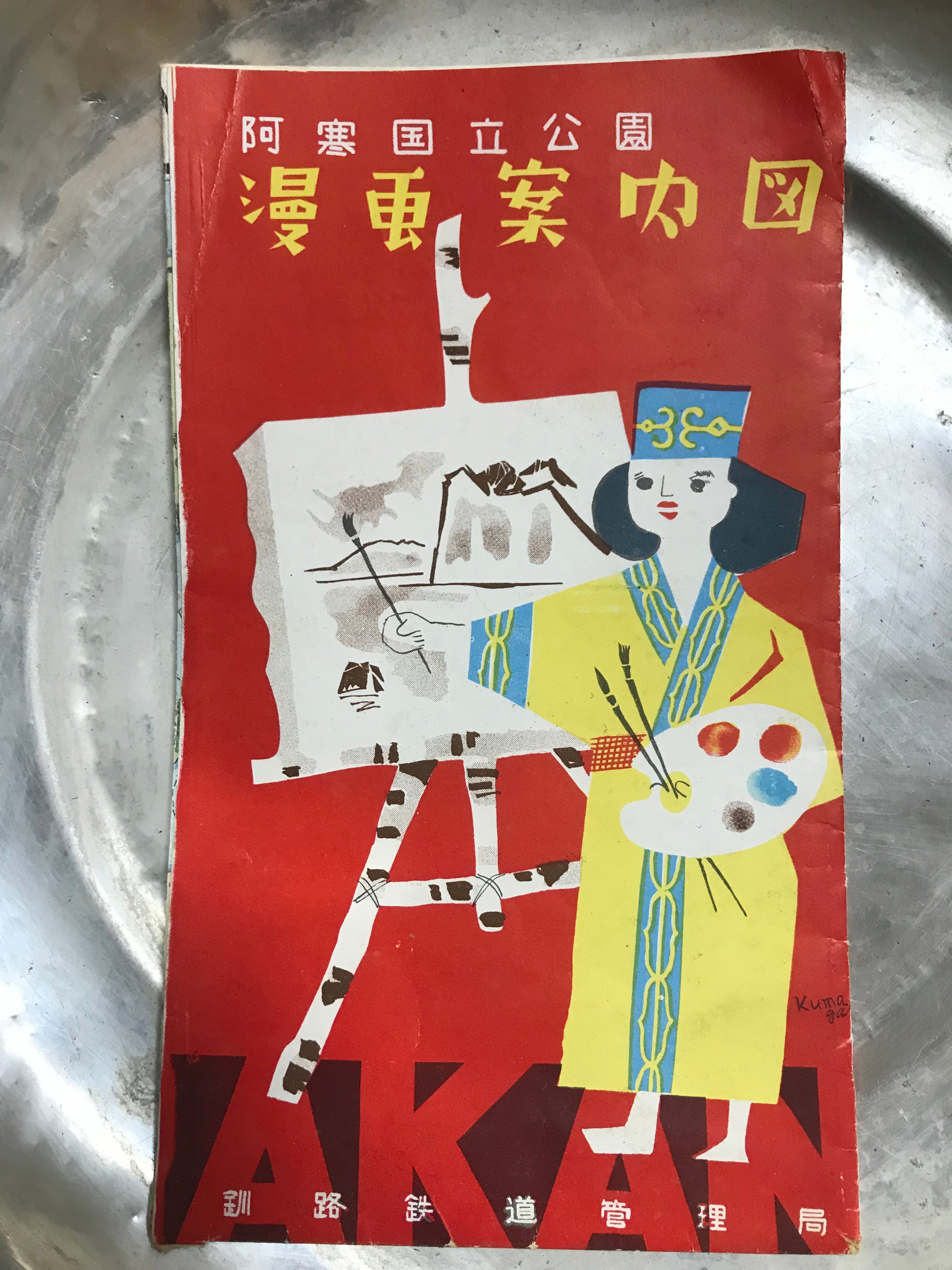 昭和30年代 アイヌの表紙も可愛い「阿寒国立公園 漫画案内図」