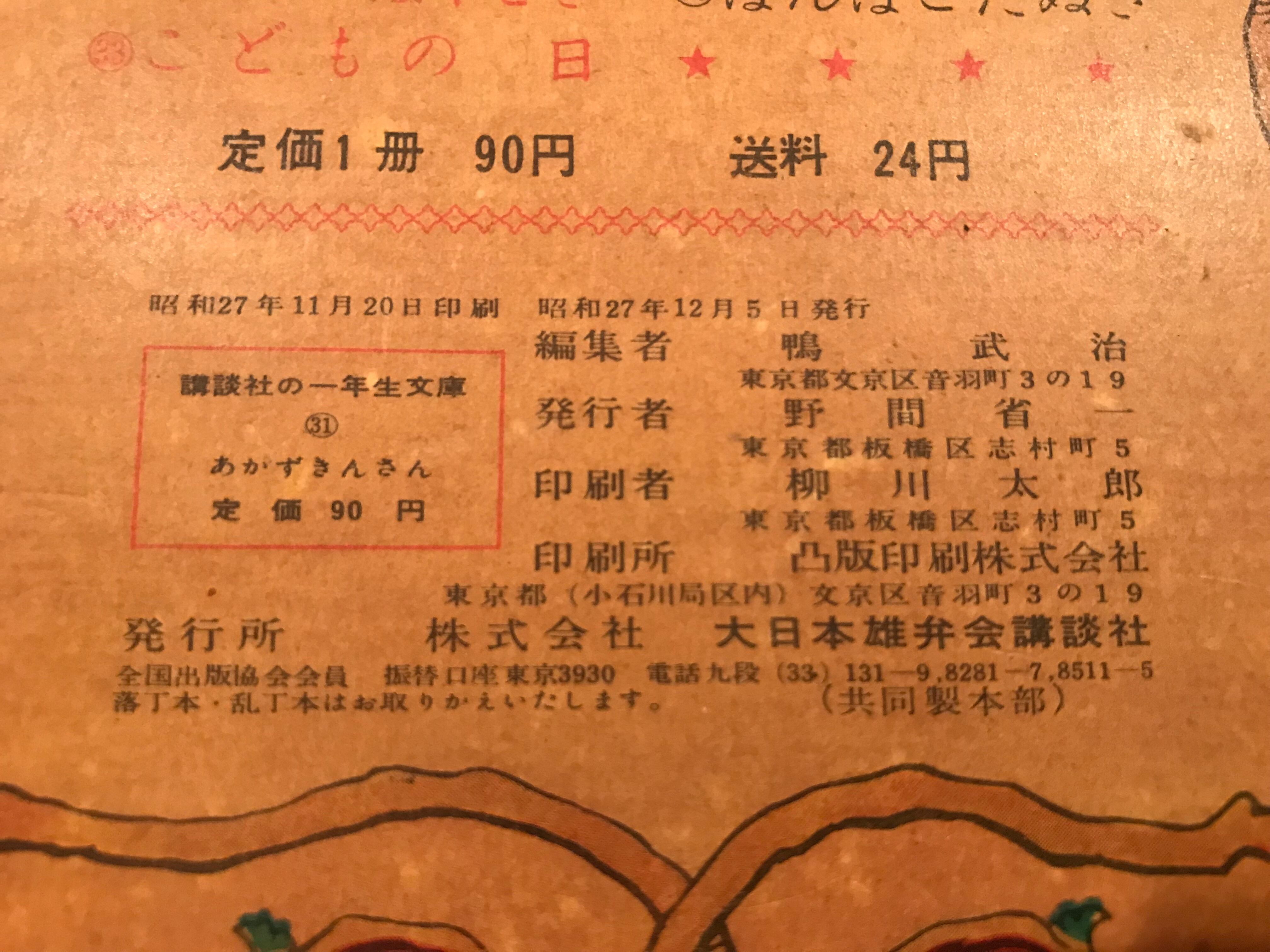 昭和27年初版「あかずきんさん」講談社の一年生文庫 1950年 可愛い絵本