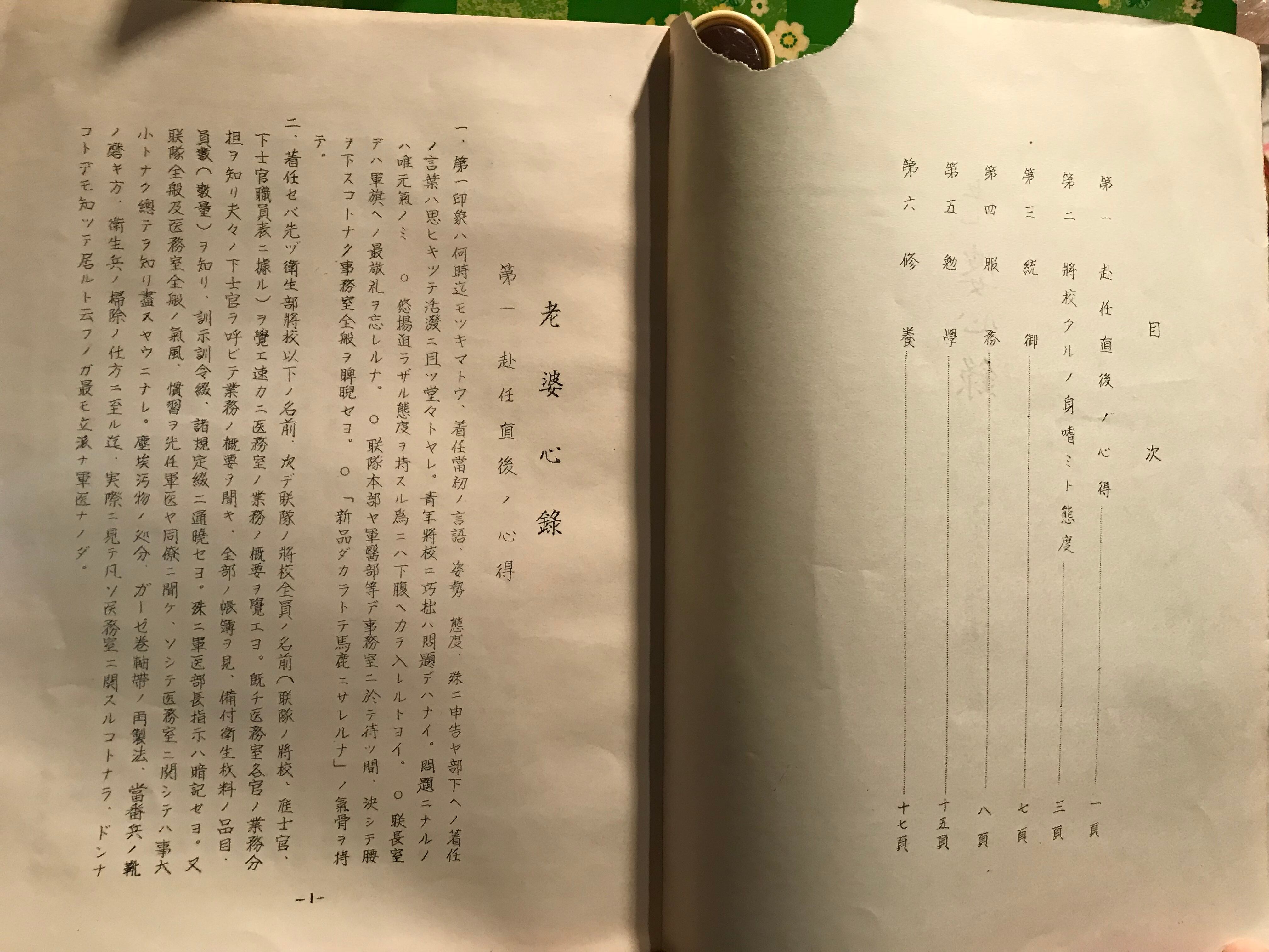 終戦直前!「第二期軍醫候補生卒業後の心得 老婆心録」昭和20年6月15日 内部資料