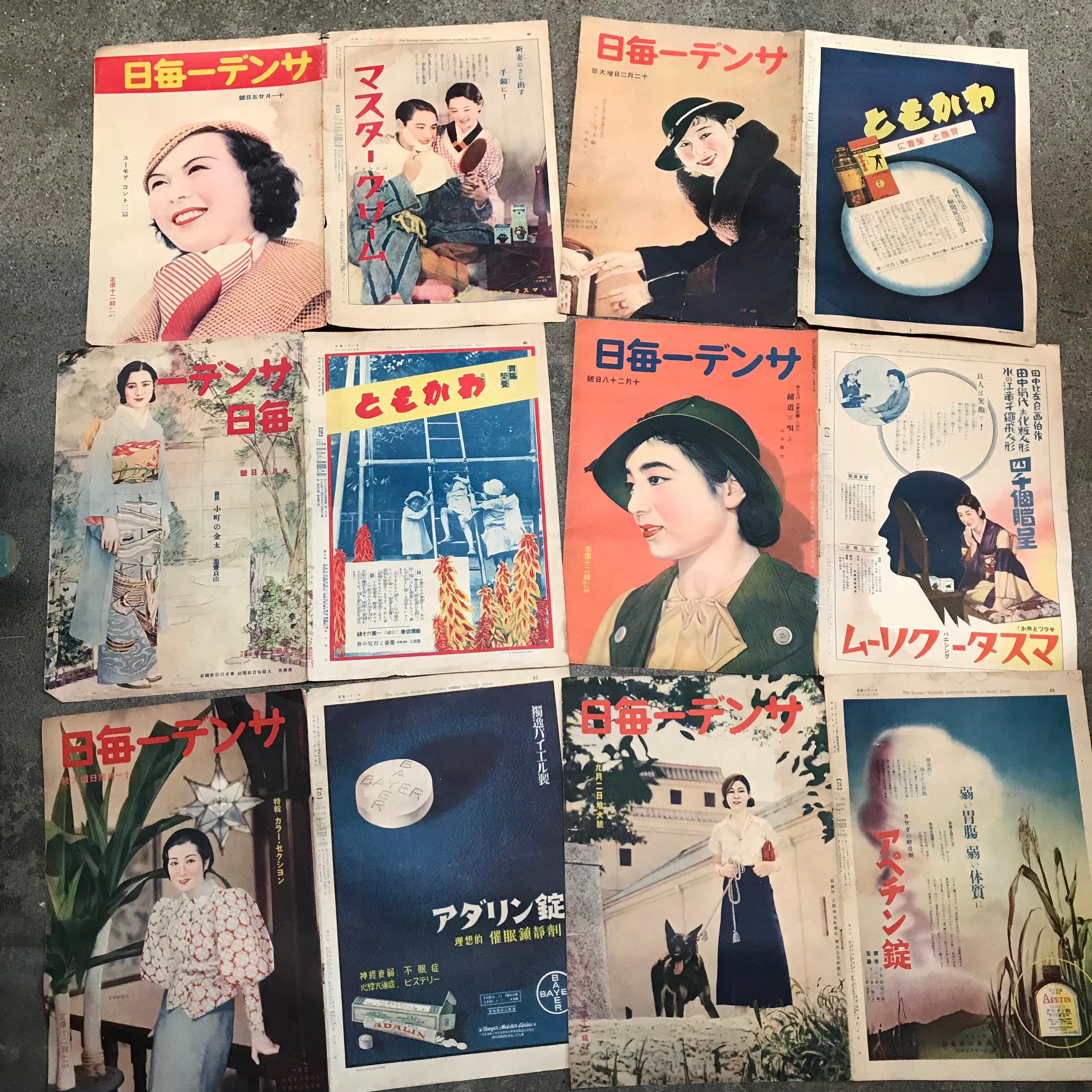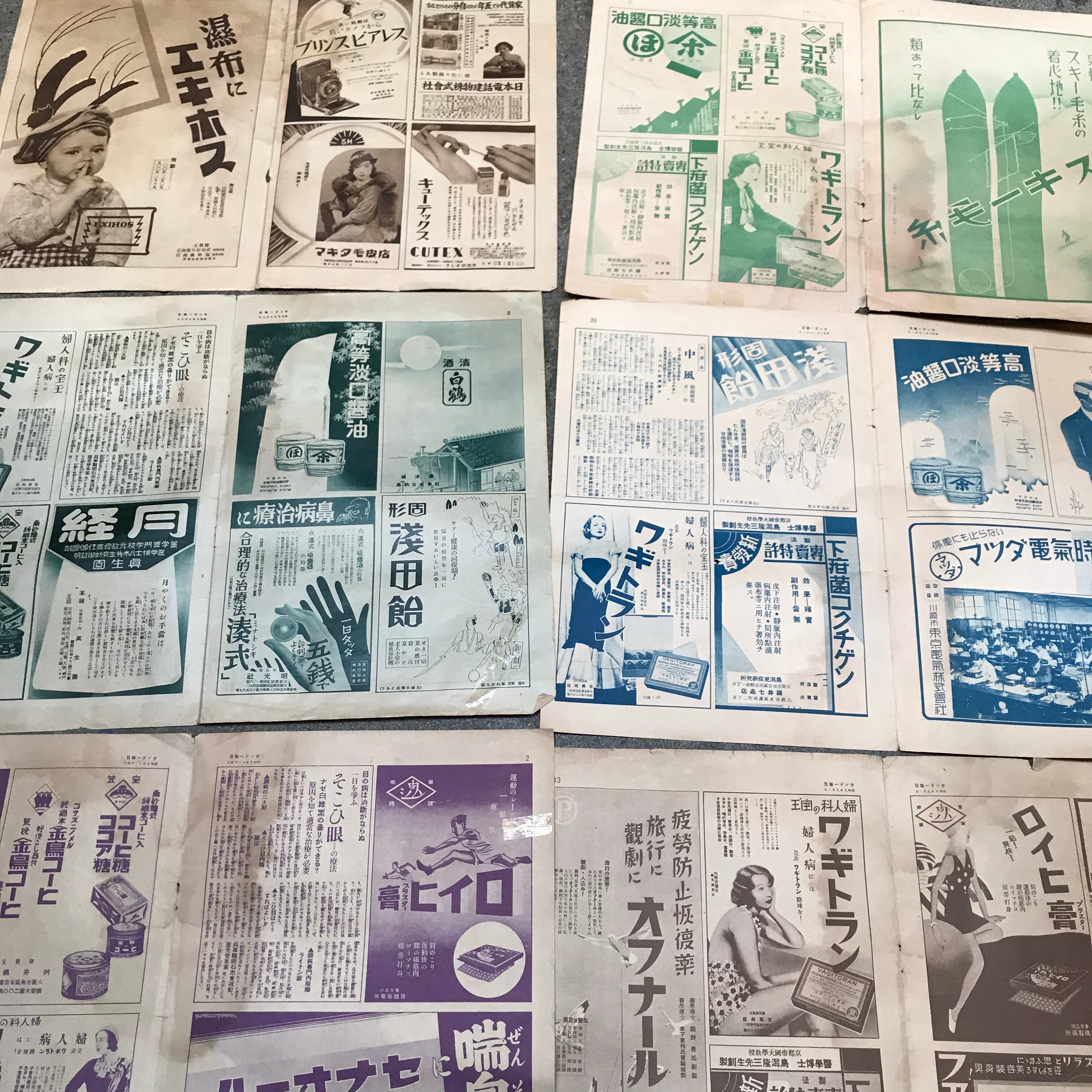 戦前「サンデー毎日」の表紙&裏表紙、6枚セット!昭和9年 美人と広告 レトロ