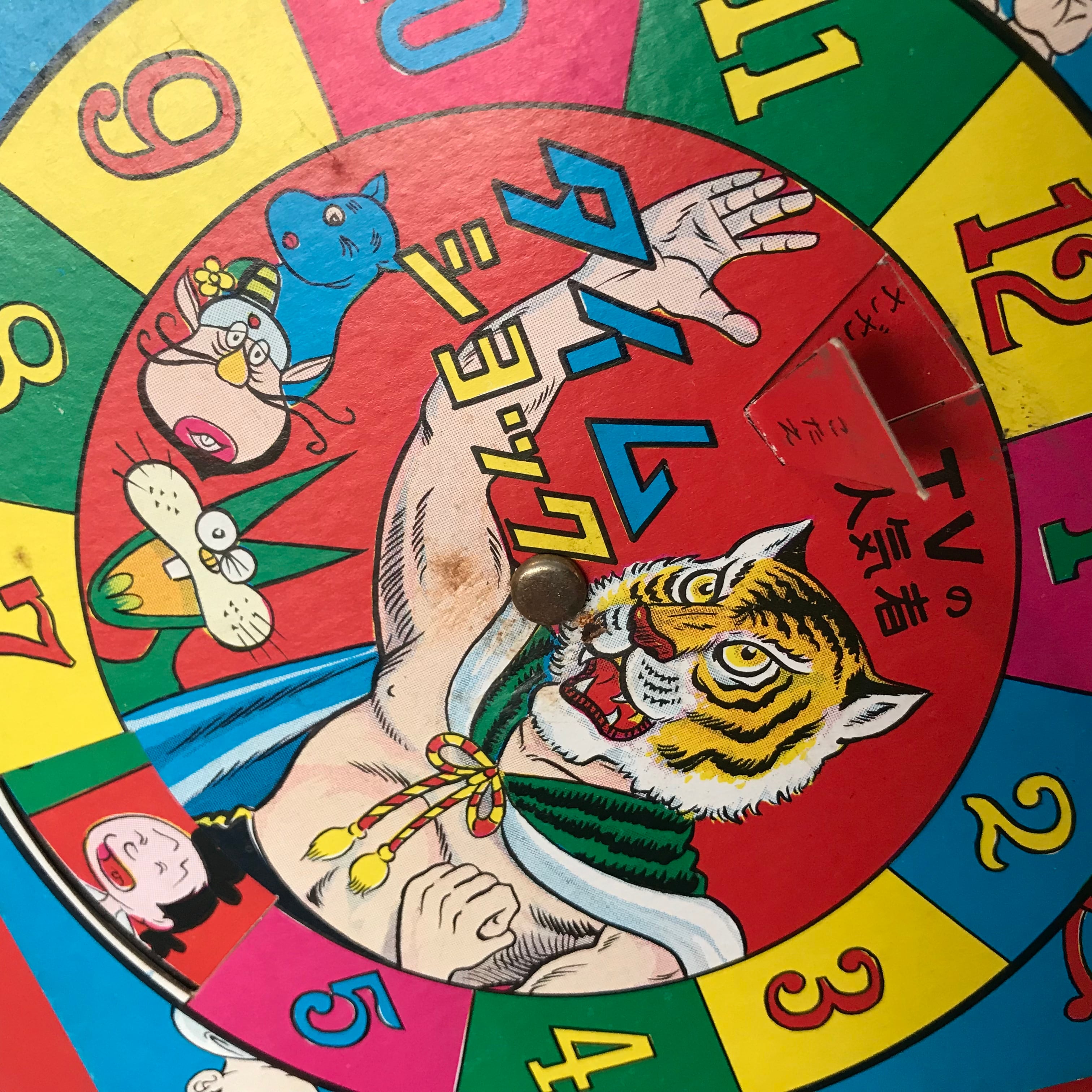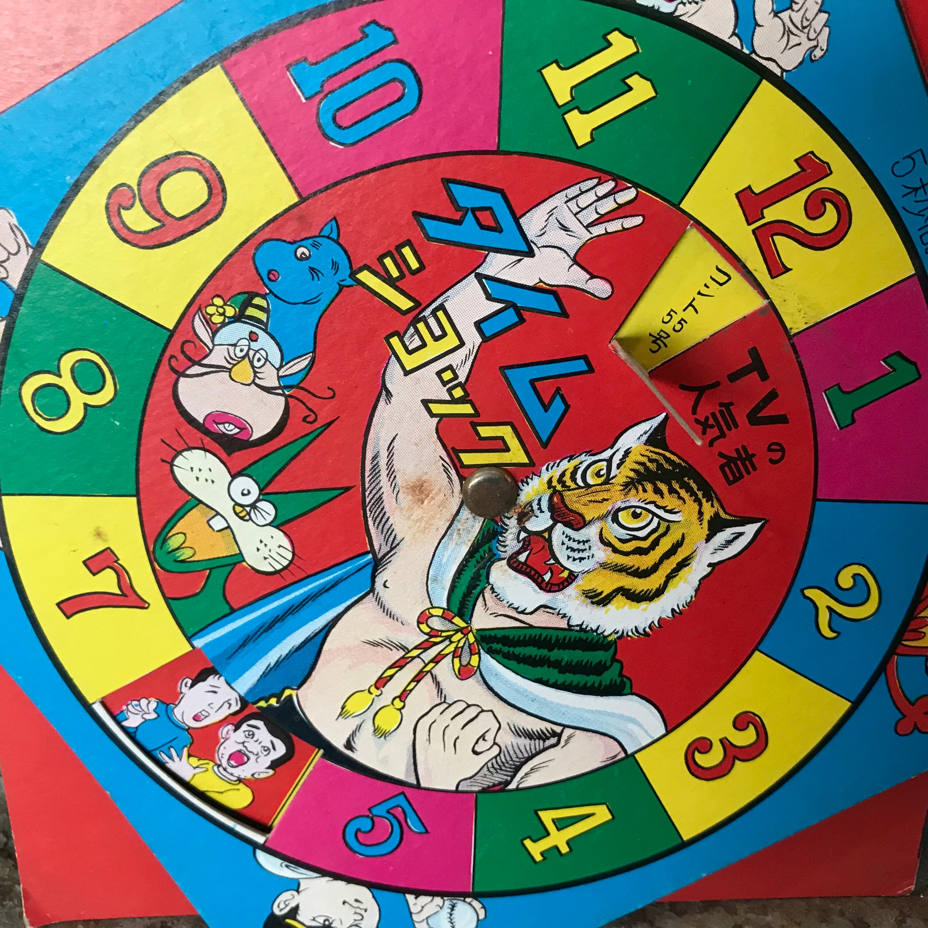 真ん中の円盤をくるくる回して、人気者の名前を当てるゲームのようです。