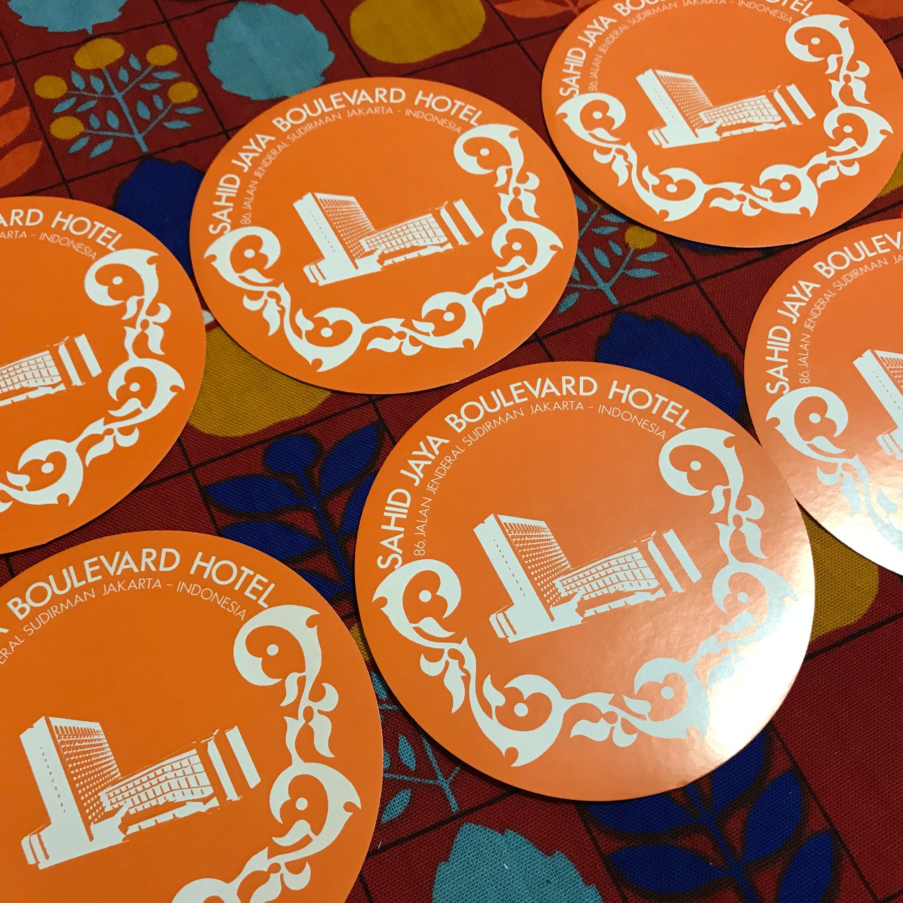 インドネシアのホテルの丸いステッカー6枚セット オレンジで可愛いです。