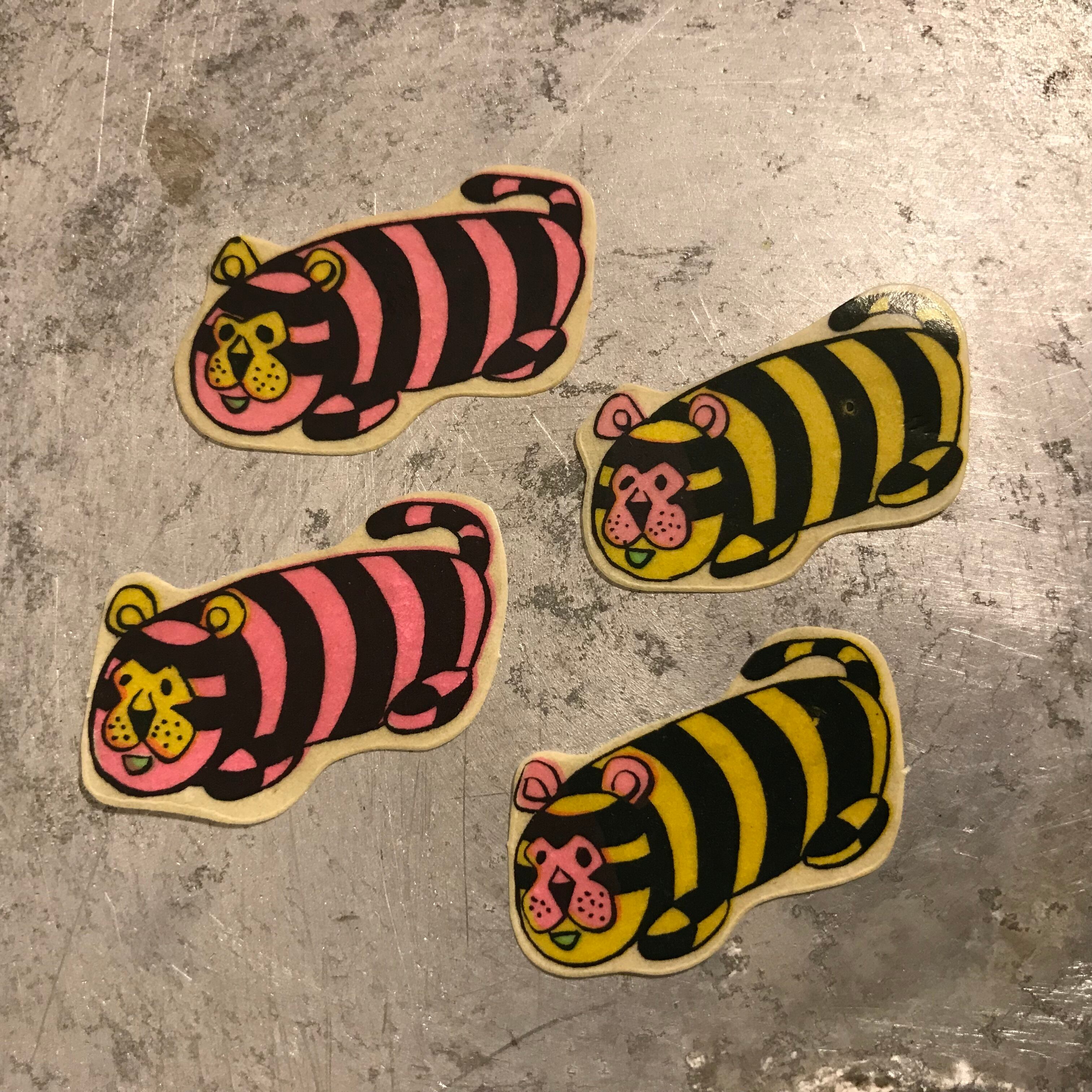 ファンシーサイケ☆笑顔のトラ ミニシール 2色×各2片 昭和 レトロ トリップ
