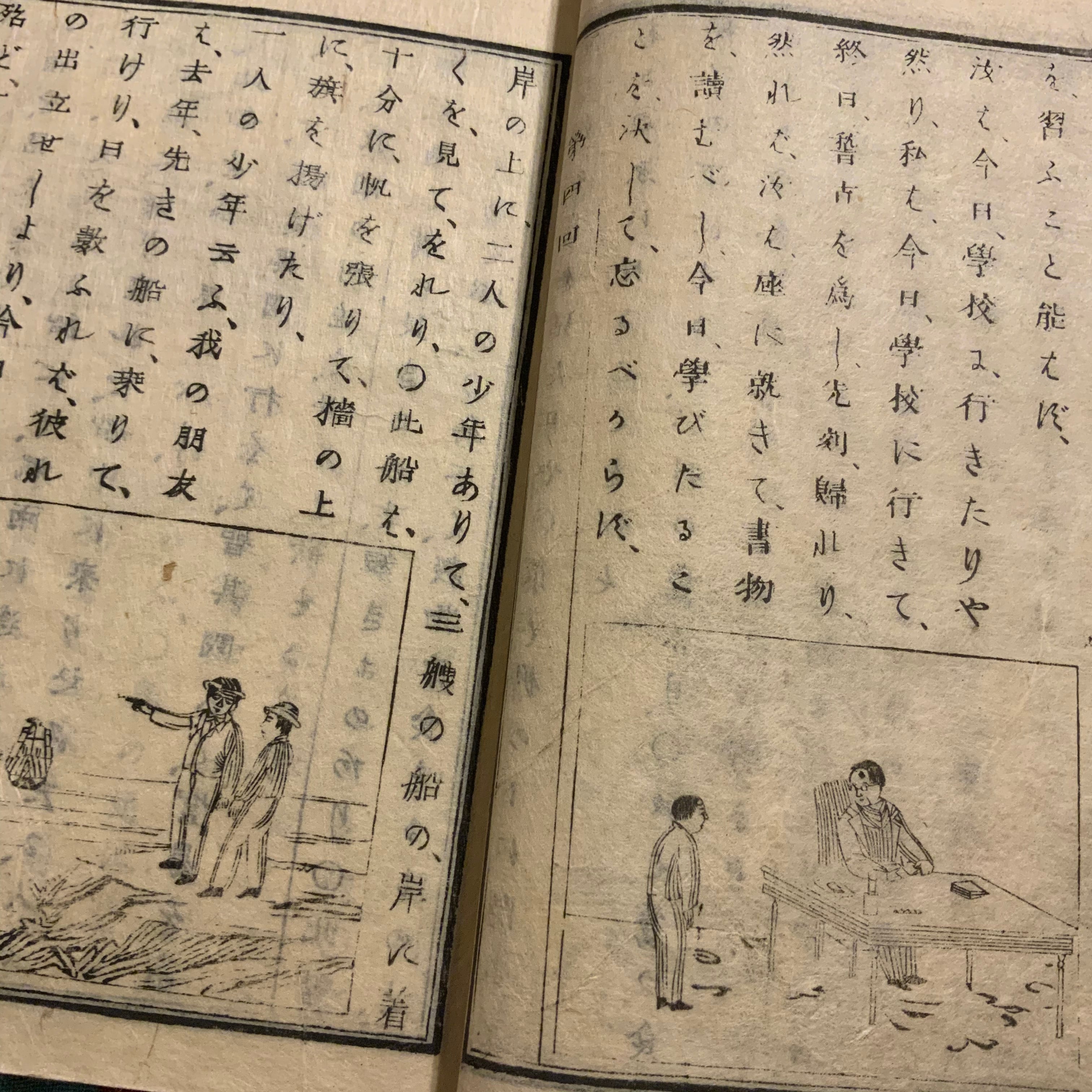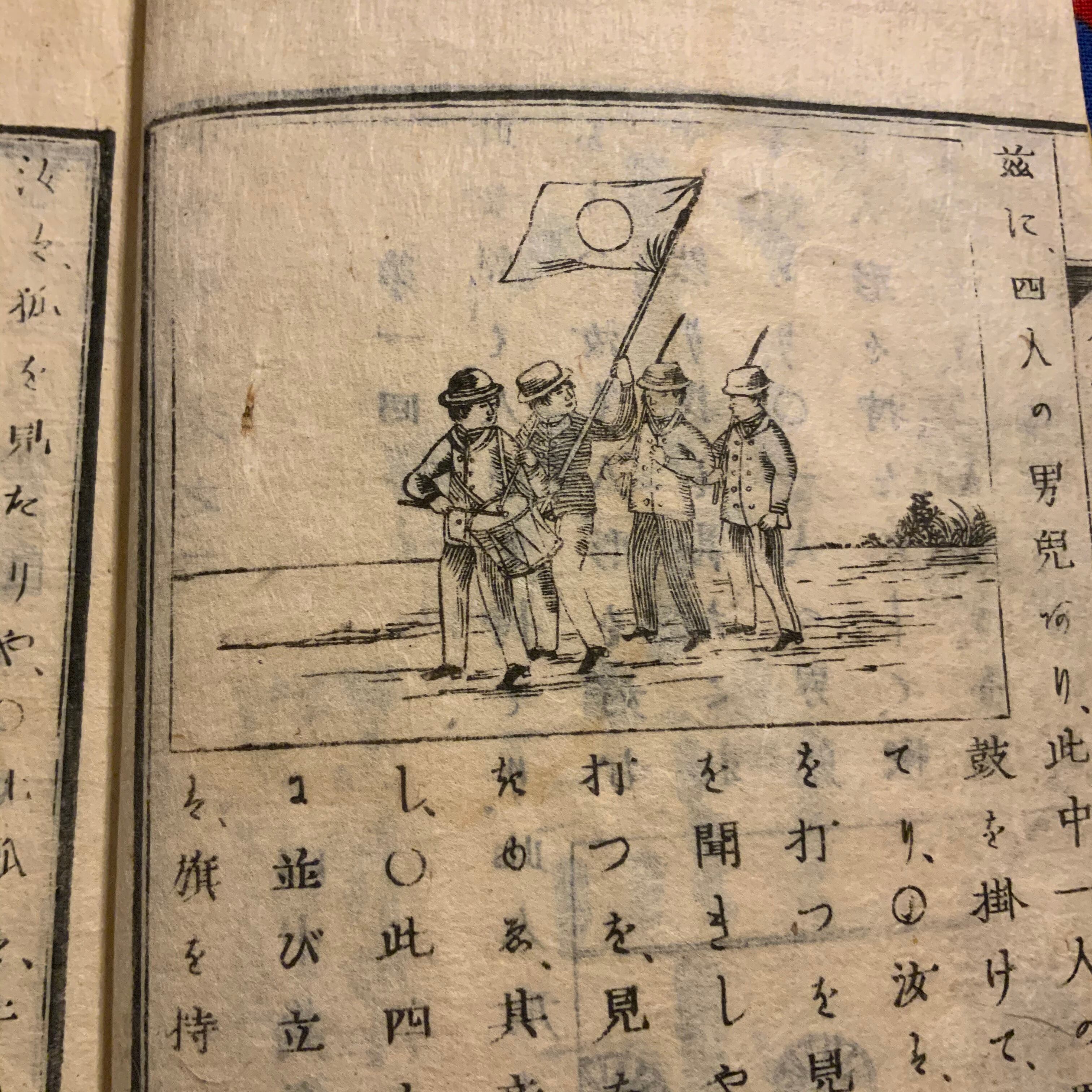 二巻目ということで奥付が無いので断言できませんが、表紙の裏貼り「神武天皇即位紀元二千五百三十三年」に加え、文体や文字遣いにはけっこう江戸感があり、明治初頭のものだと思います。