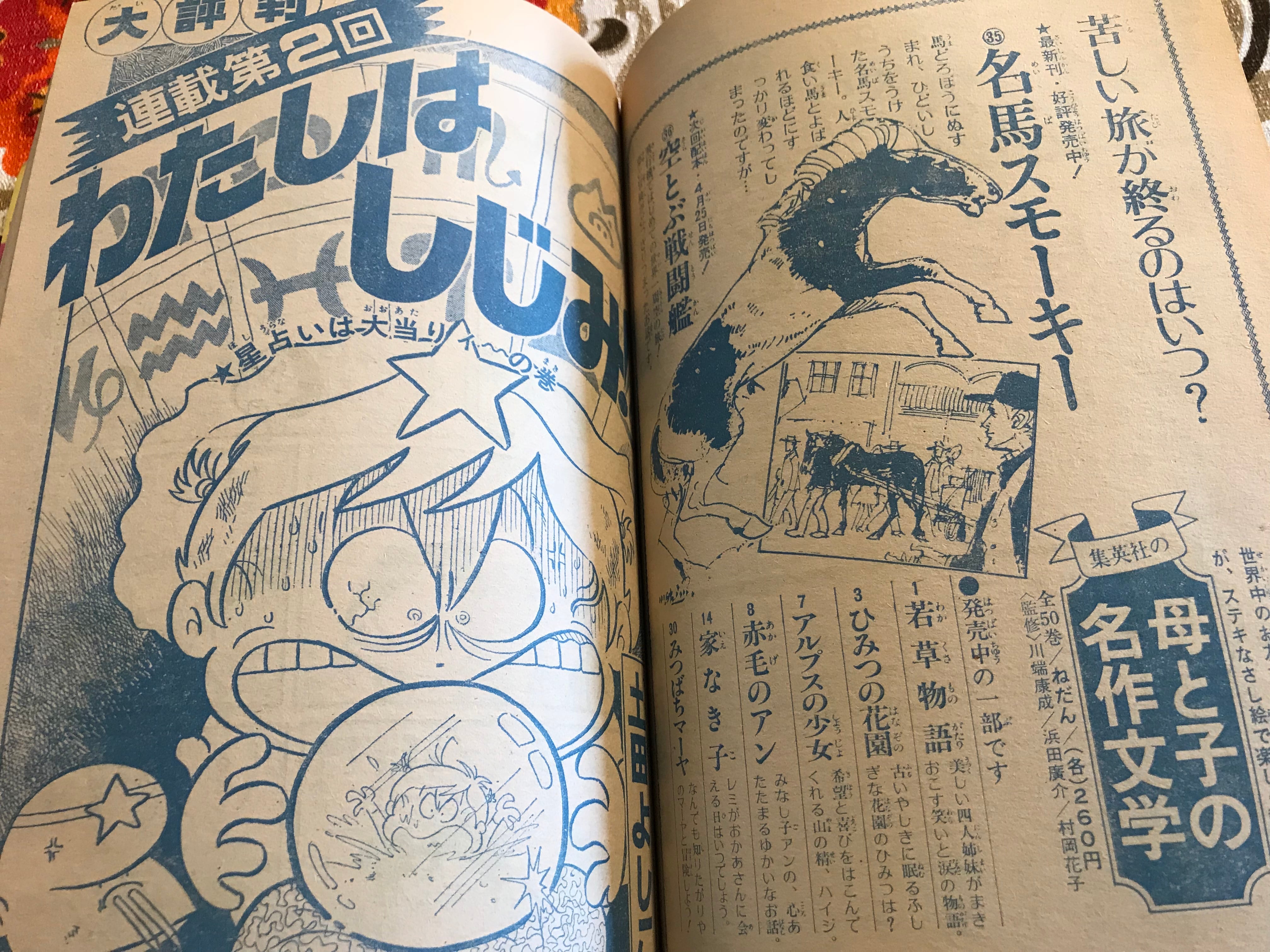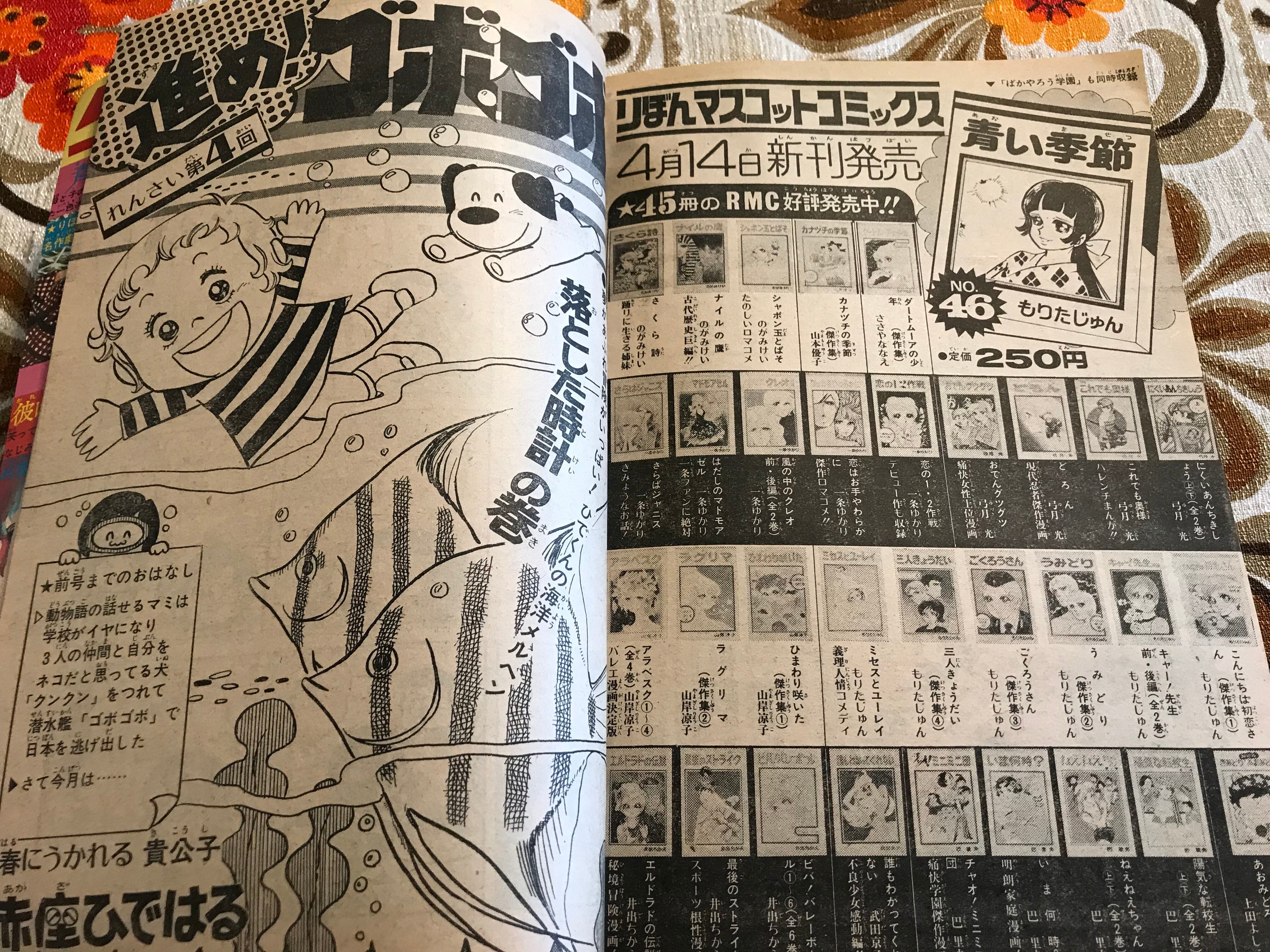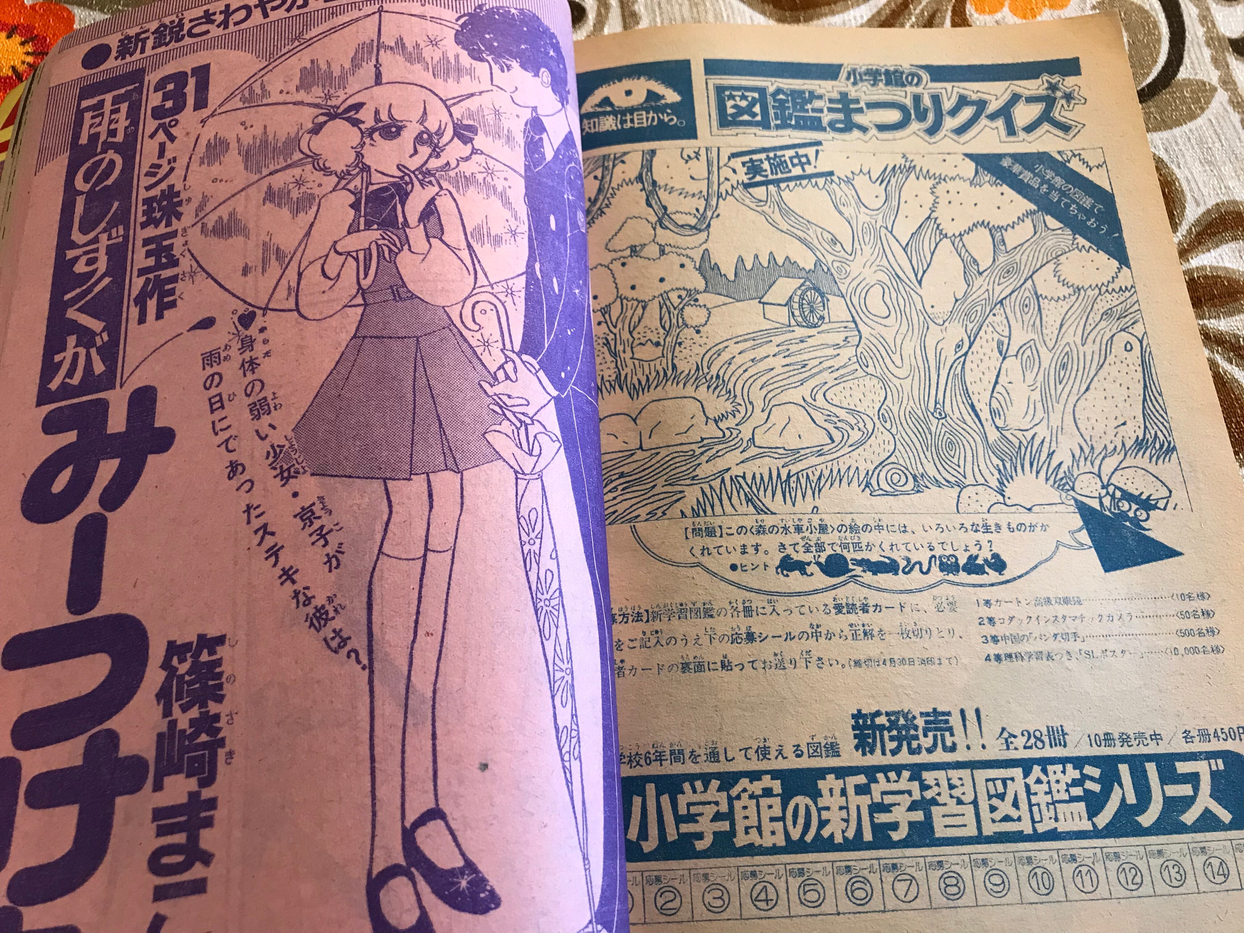73年「りぼん」5月号(最終回!「6年○組〇〇番」巴里夫・新連載「若葉の頃」ささやななえ・読切「三色すみれ」山岸涼子・読切「雨のしずくがみーつけた」篠崎まこと・金子節子・巴里夫・弓月光・一条ゆかり・土田よしこ)昭和レトロ 少女漫画 広告