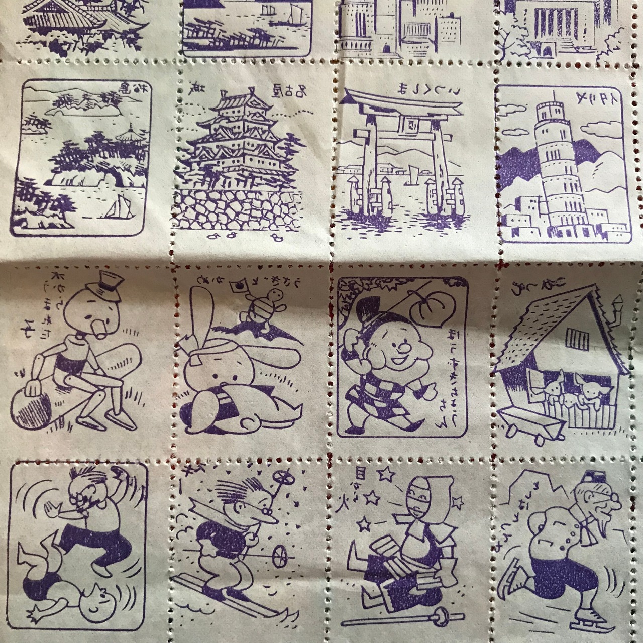 昭和30年代前半「まんがうつしえシート」2枚セット。約18×37センチ