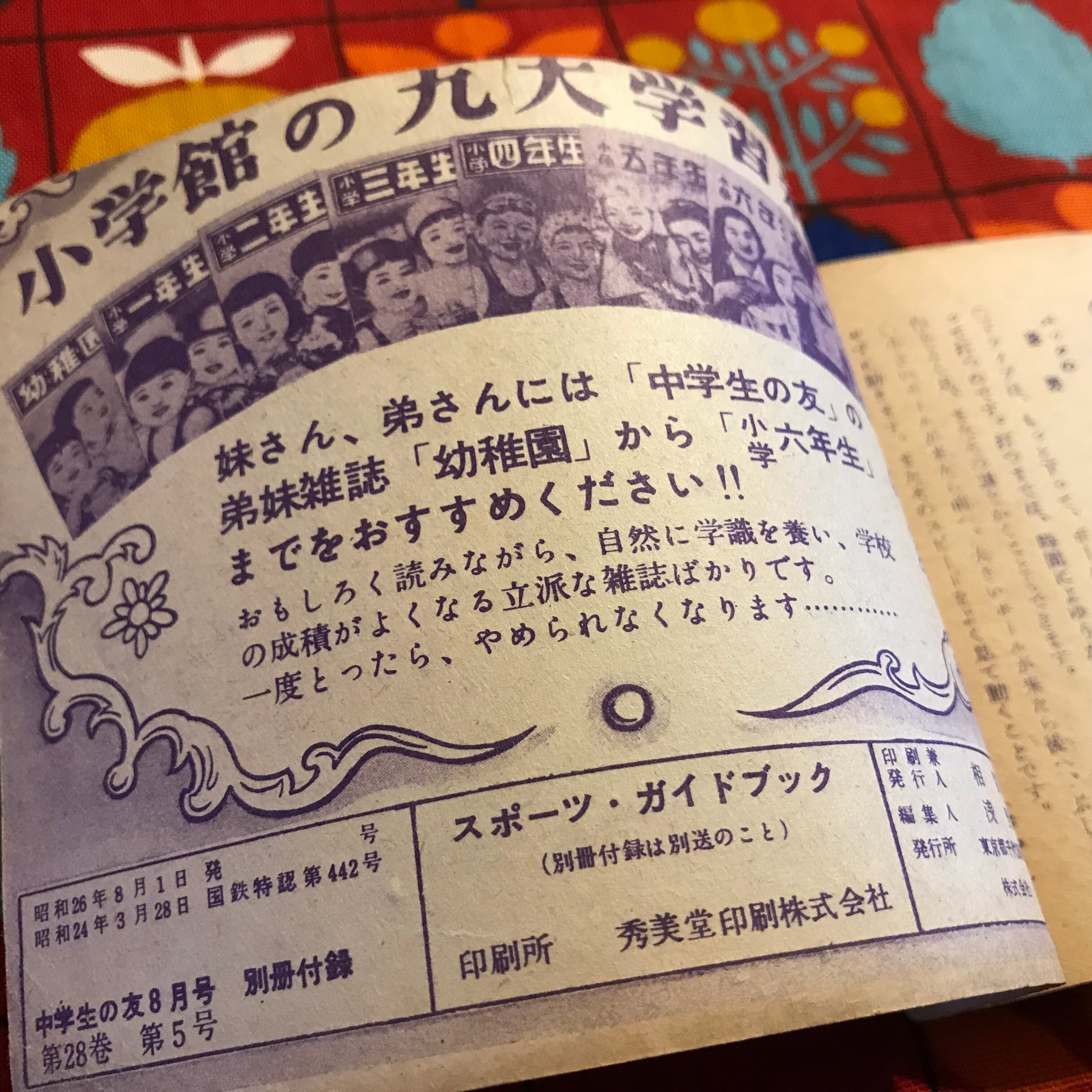 中学生の友 昭和26年8月号ふろく「スポーツガイドブック」野球選手たくさん! それとヘルシンキオリンピックに向けての選手紹介。