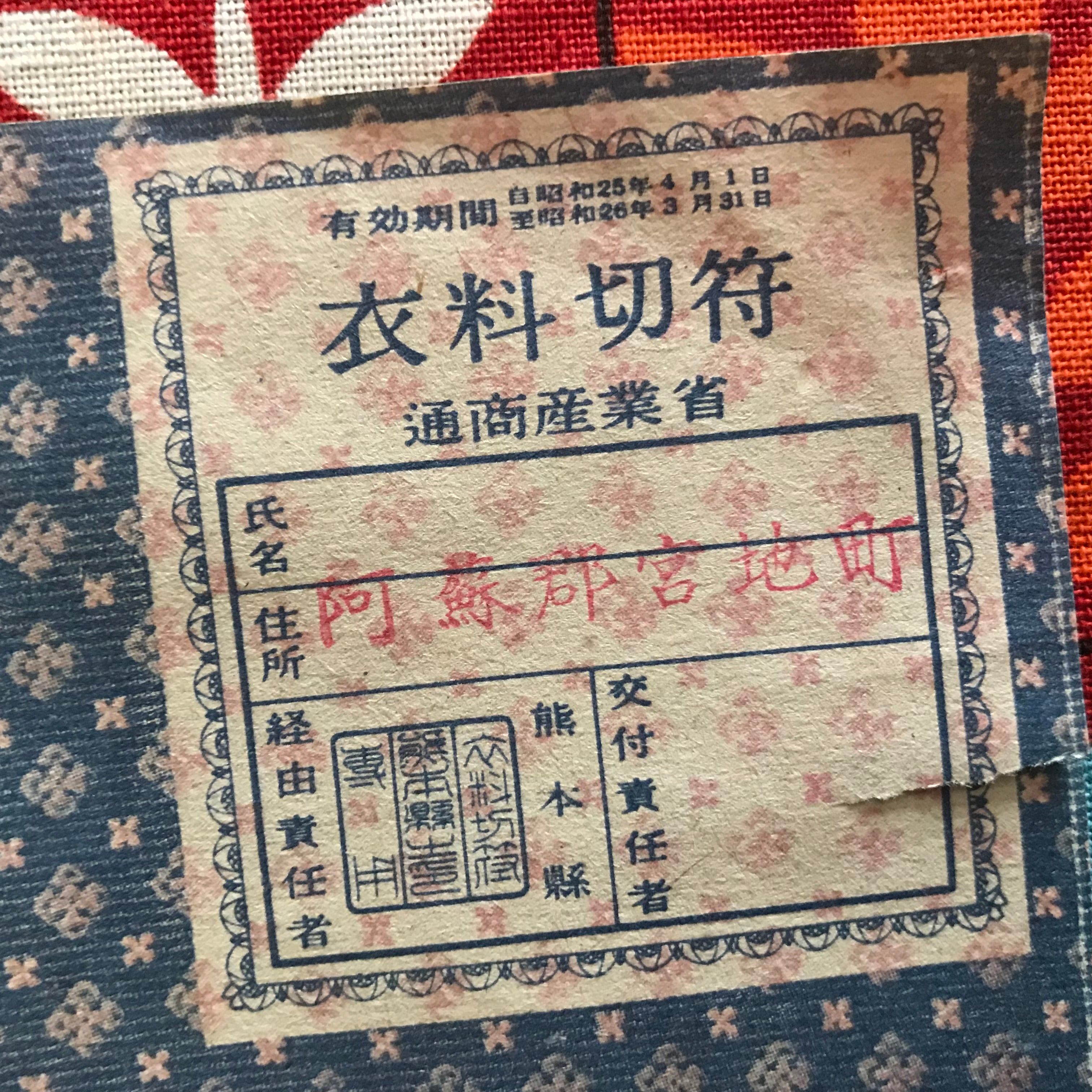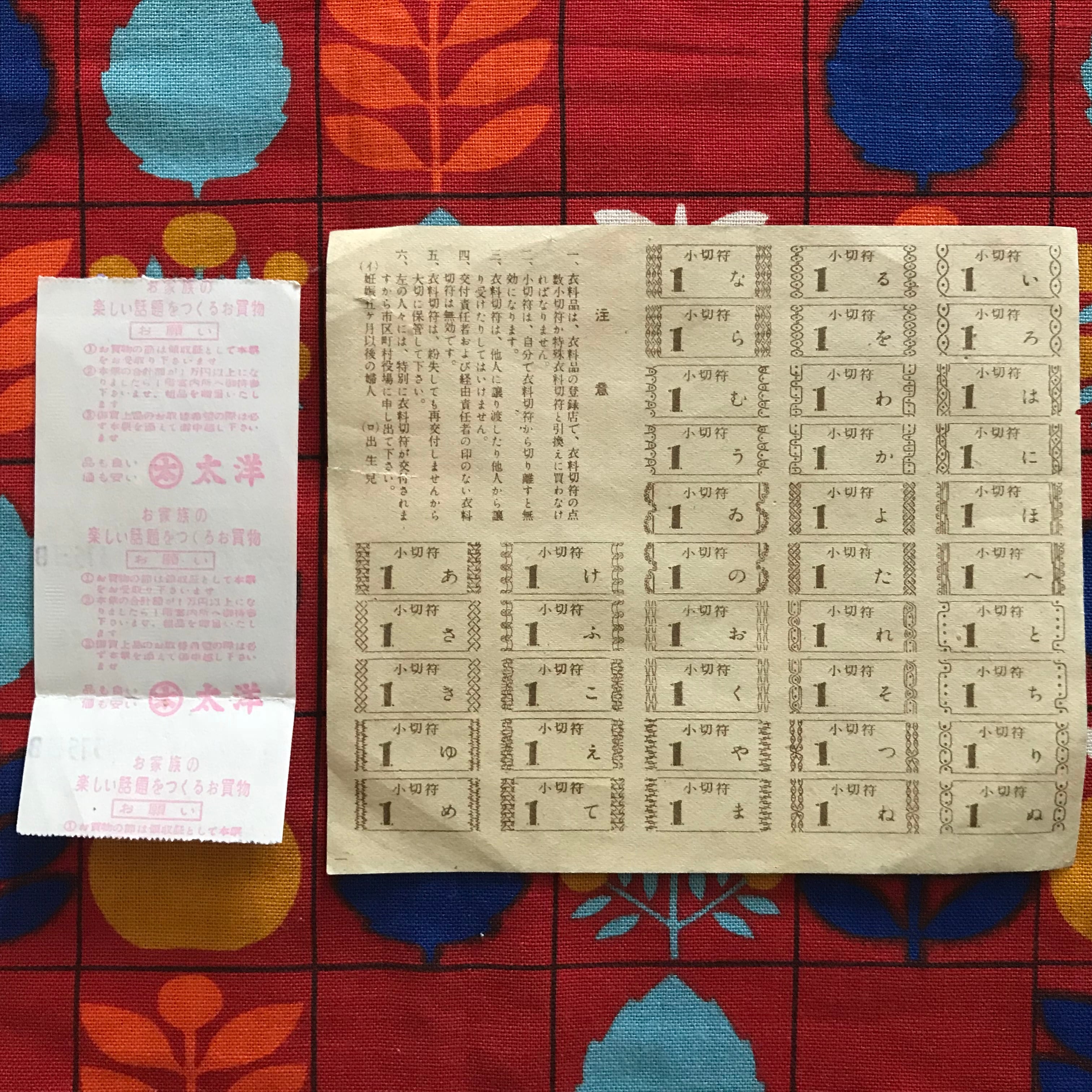 戦後生活資料。配給「衣料切符」未使用揃い切符&熊本大洋デパートのレシート
