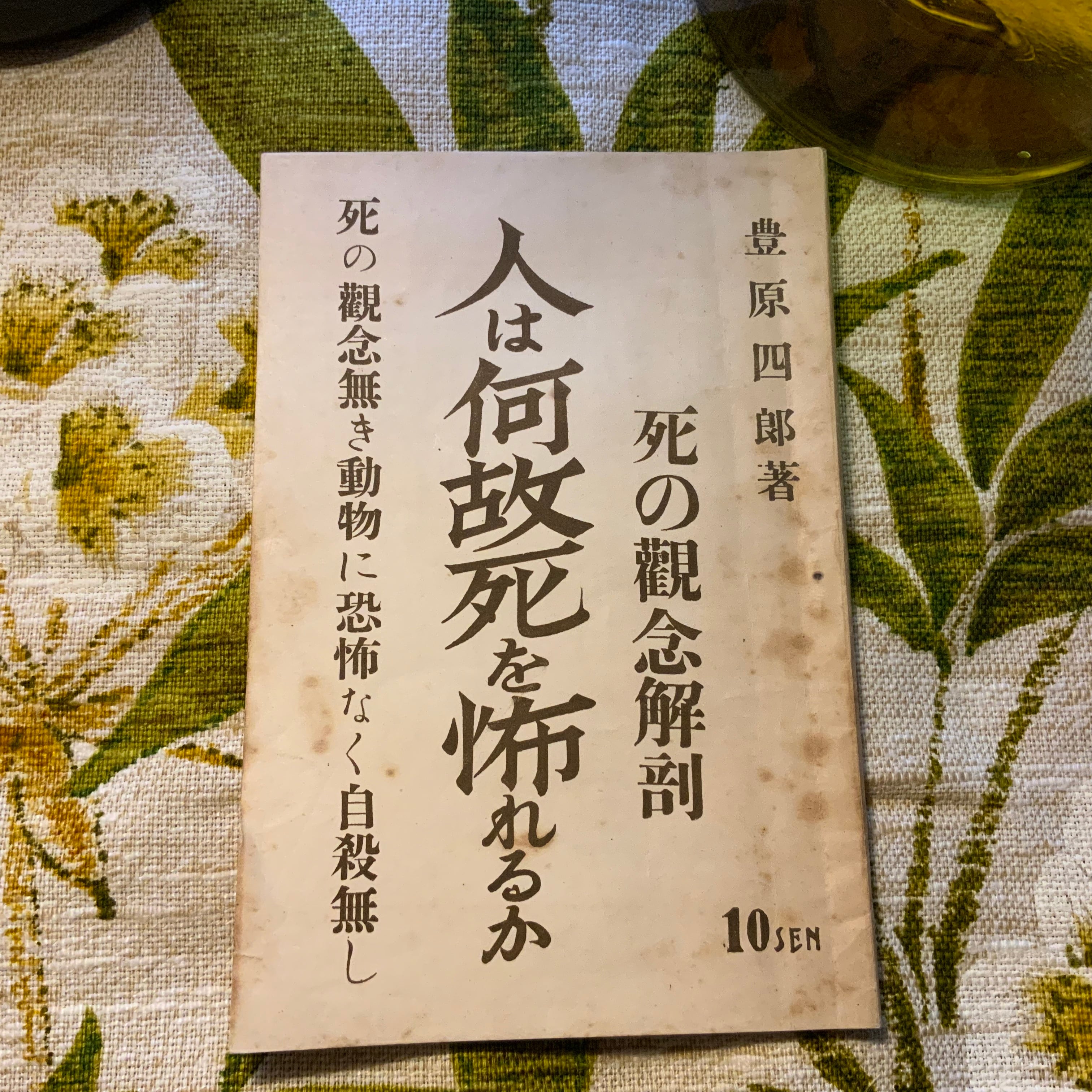 戦前珍冊子「死の観念解剖 人は何故死を怖れるか 死の観念無き動物に恐怖なく自殺無し」豊原四郎 昭和12年 定価10銭!
