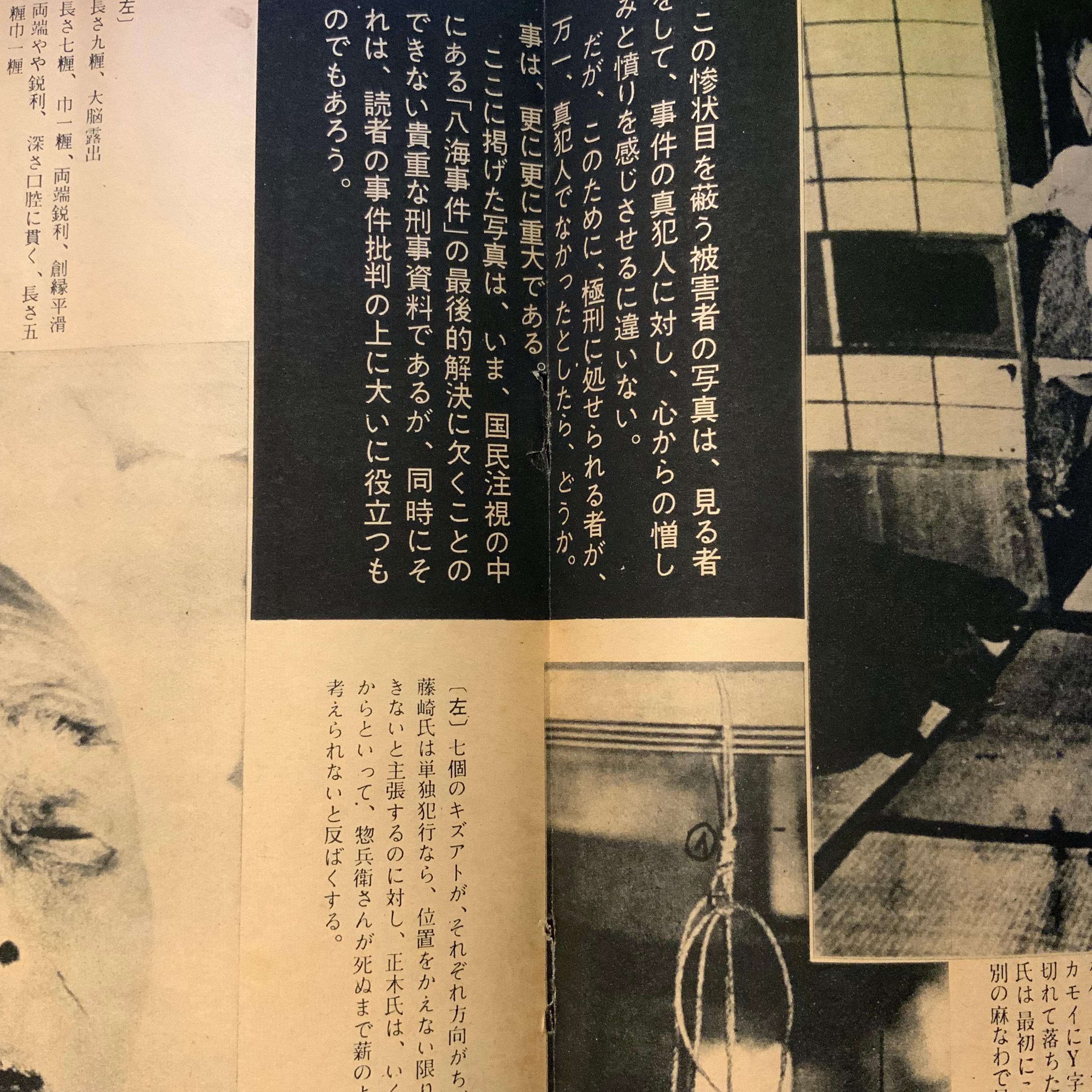 激しい。現場写真、証言、供述など満載。当時係争中の八海事件特集「日本週報」1956年5月3日号 新興宗教、霊力も。