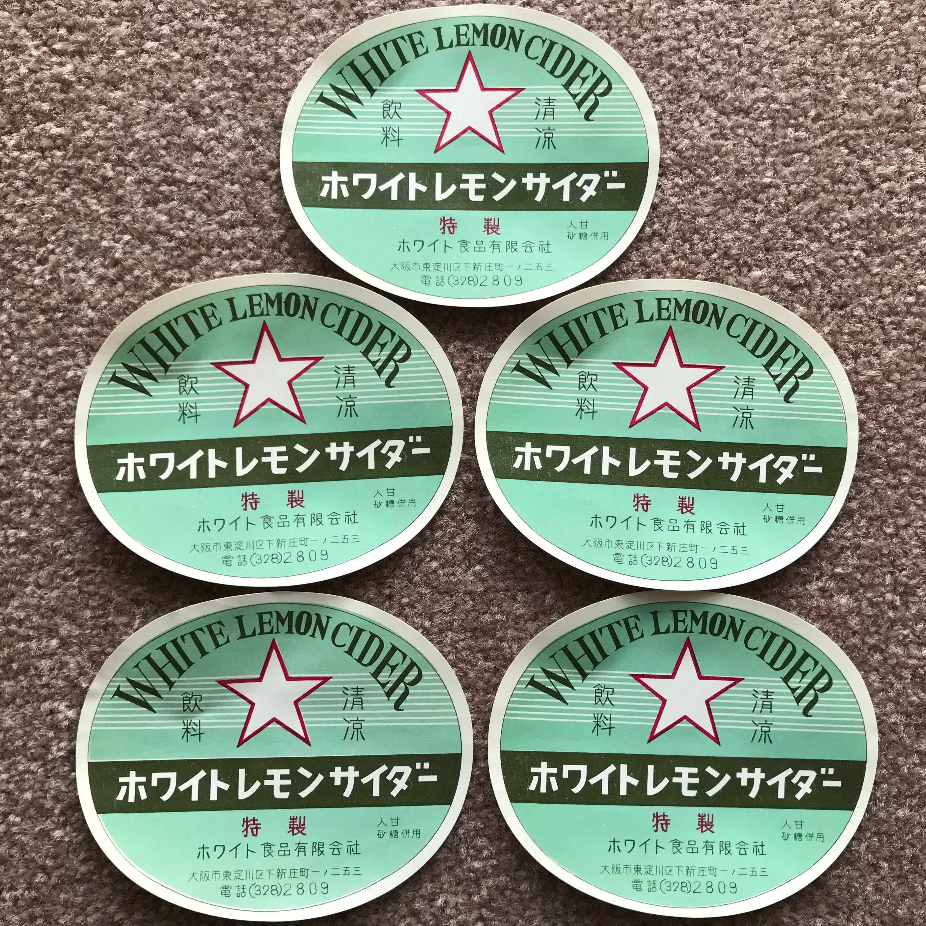 未使用ラベル「ホワイトレモンサイダー」5枚セット 昭和 大阪ローカルジュース