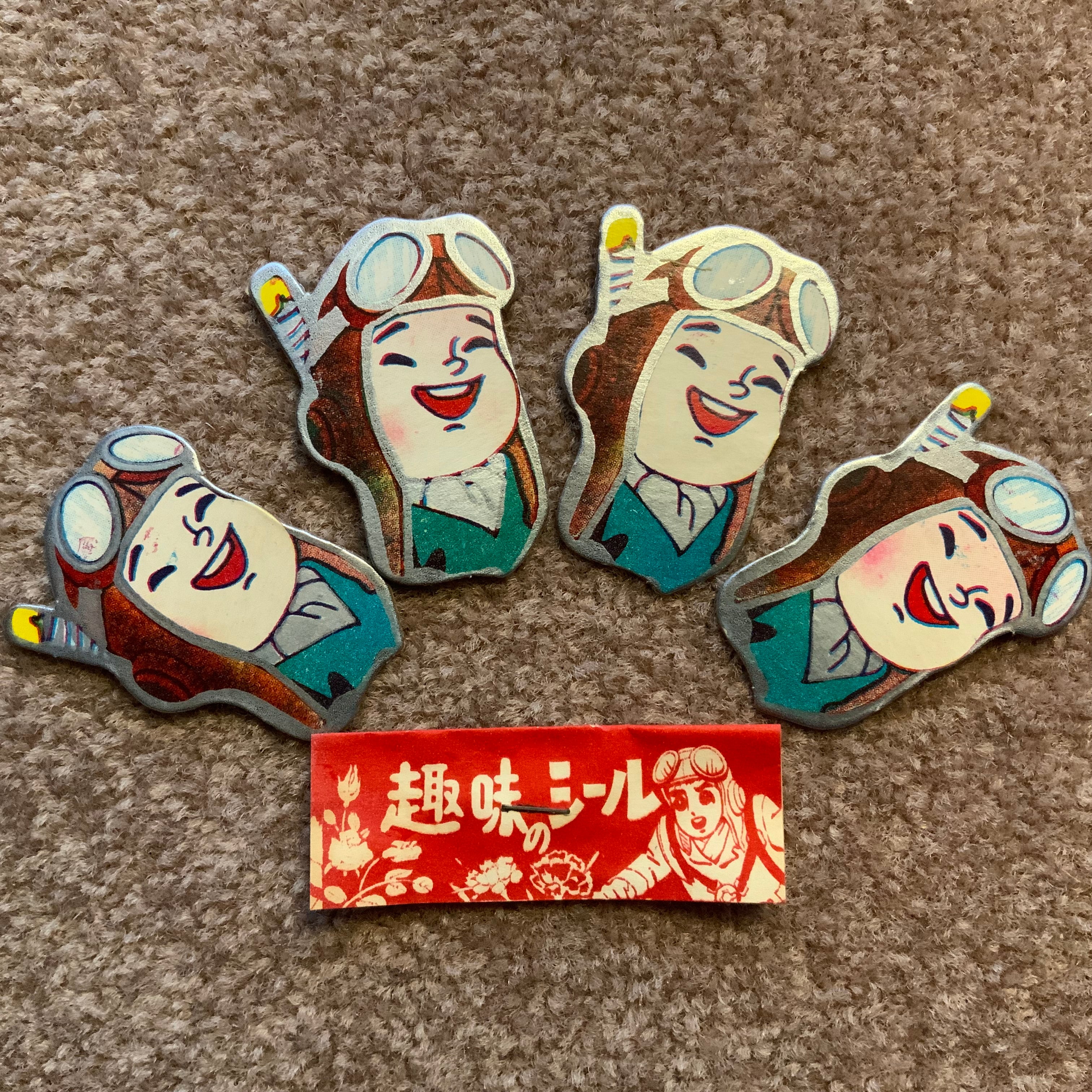 ちょっと中沢啓治先生感ある顔立ちの飛行少年 4人セット 昭和30年代「趣味のシール」古い‼︎
