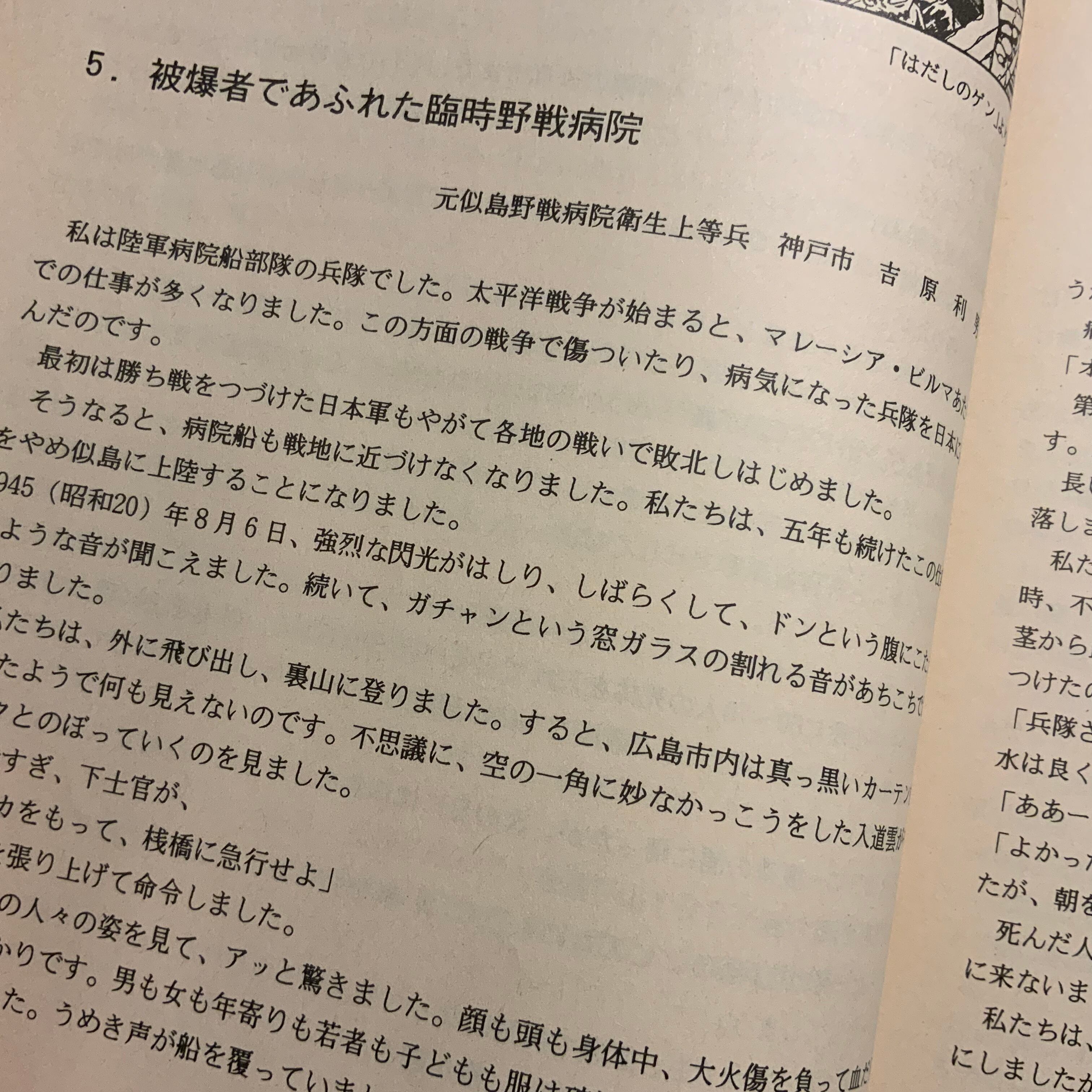 写真・証言多数。80年代非売冊子「似島」原水爆禁止少年少女のつどい実行委員会発行