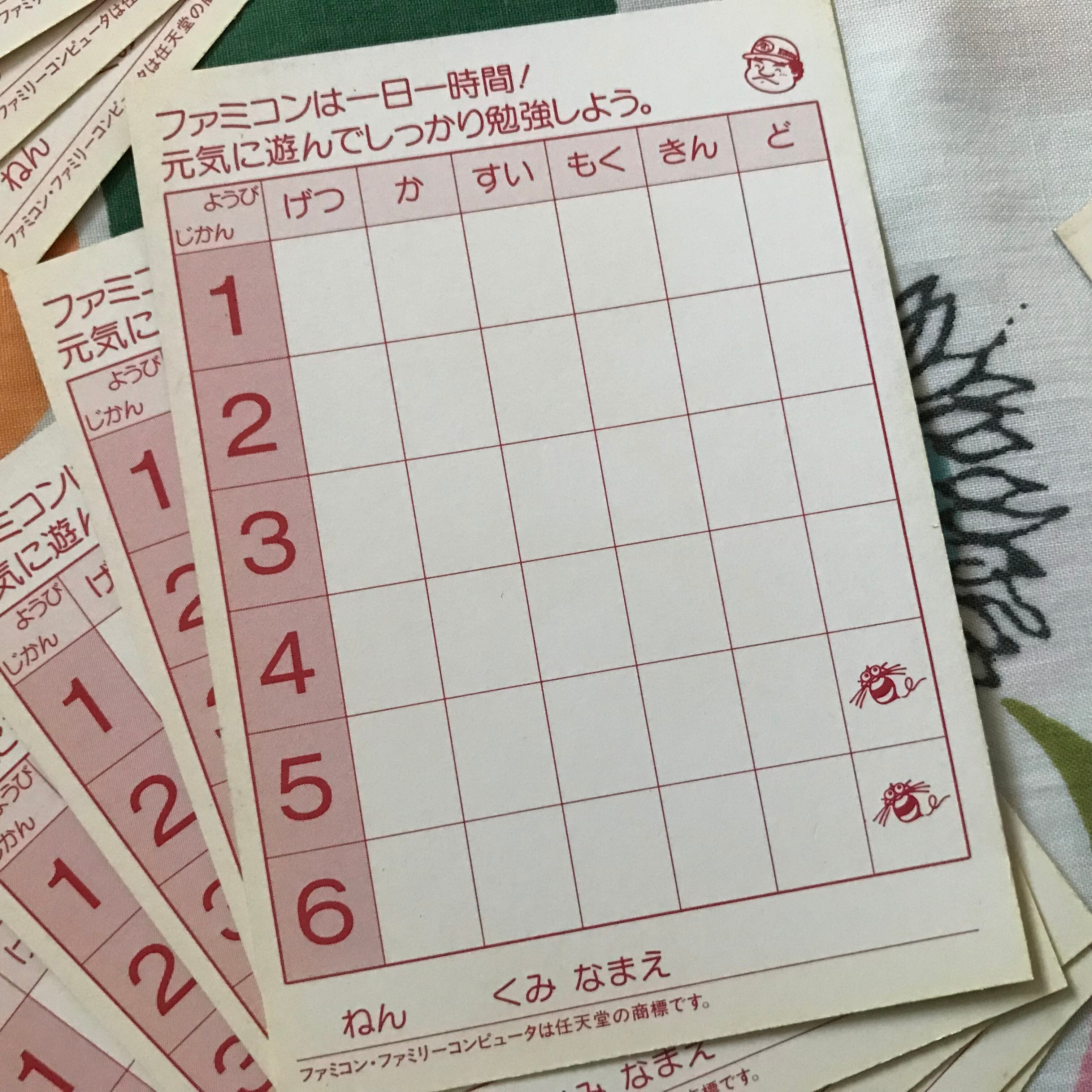 時間割表の上では高橋名人が『ファミコンは一日一時間! 元気に遊んでしっかり勉強しよう」と微笑んでいます。