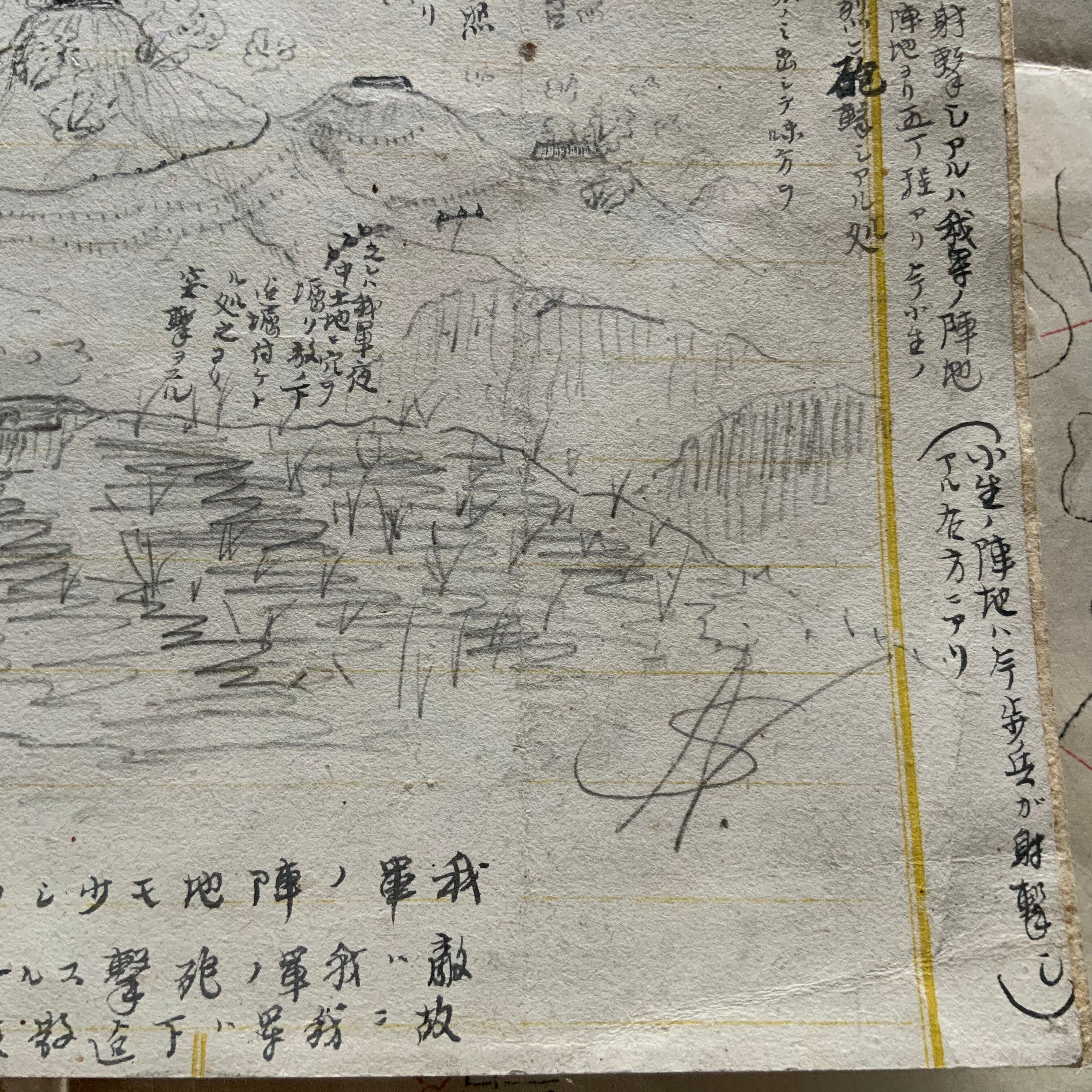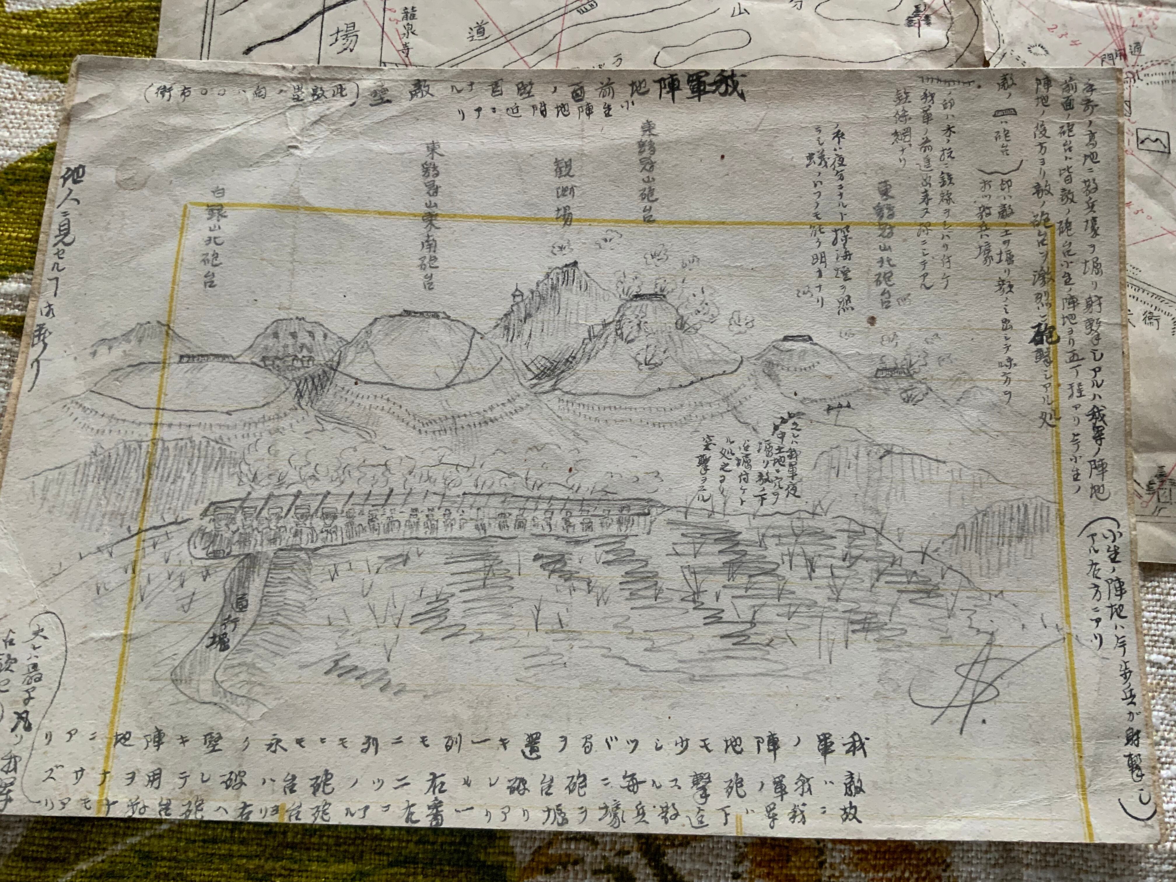 歴史の当時 手描き珍品!‼︎ 「日露戦争旅順攻囲戦 塹壕戦絵入覚書」島根 善戒山練兵場 演習記録」