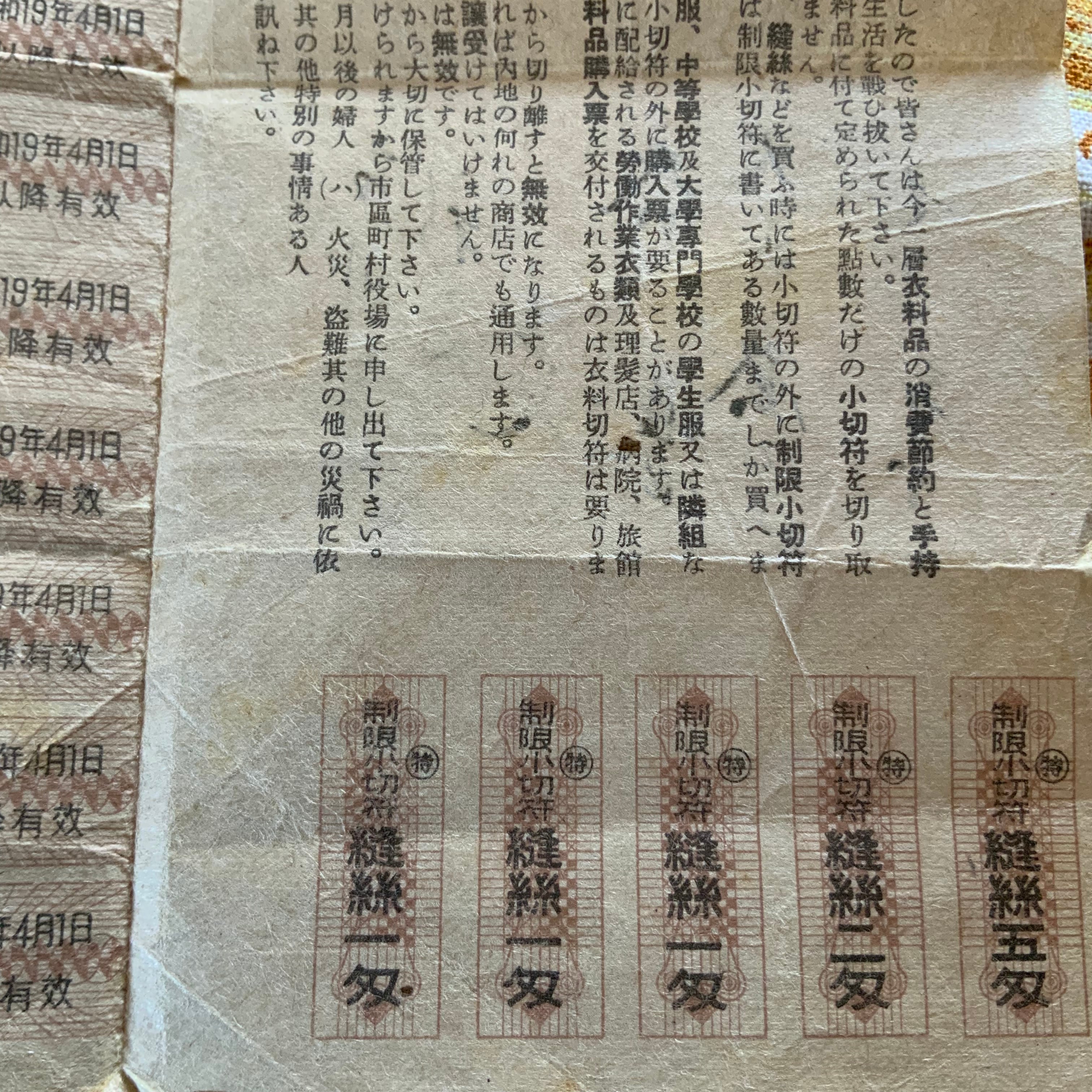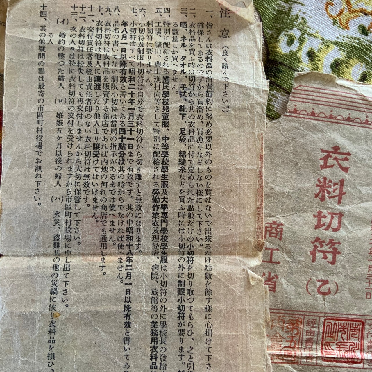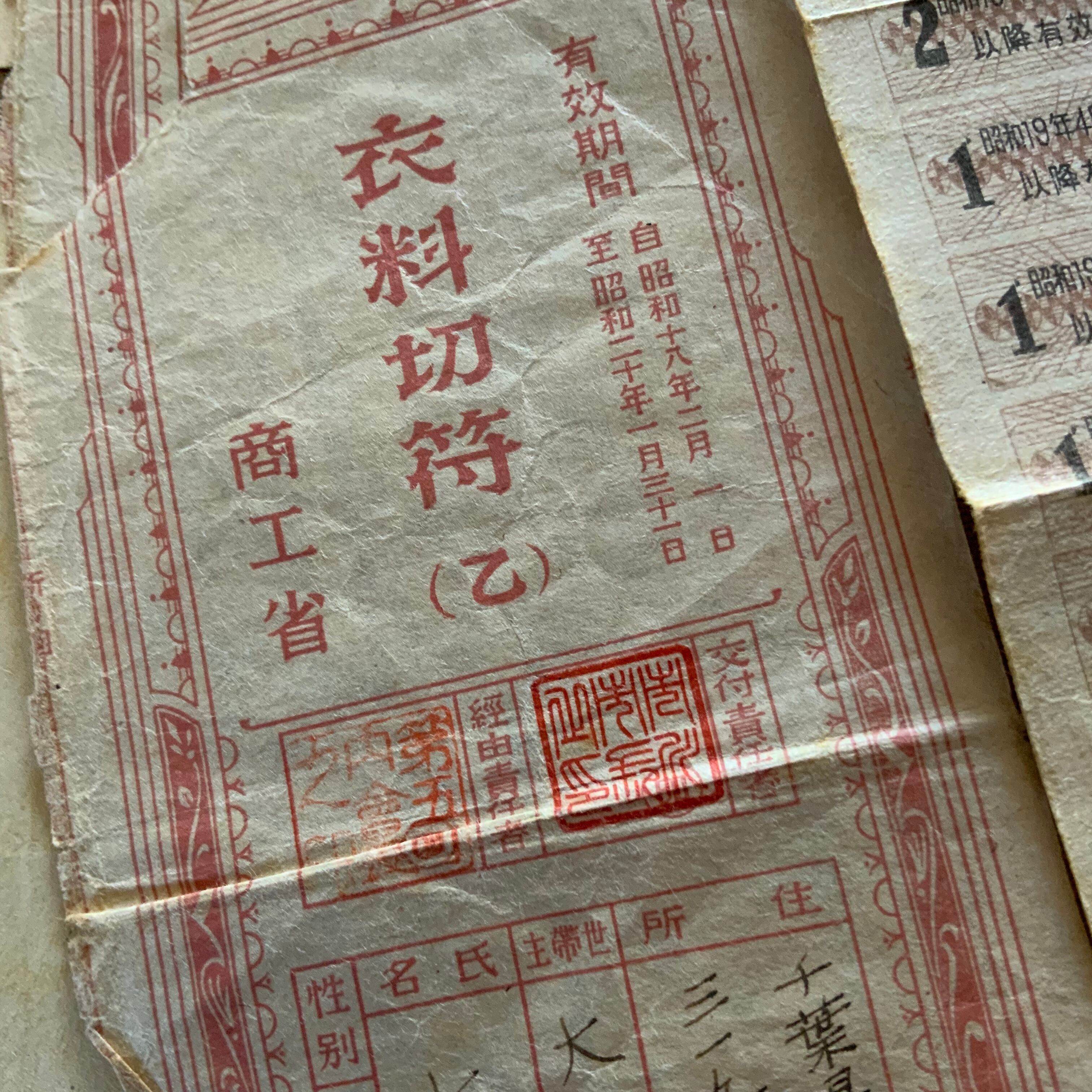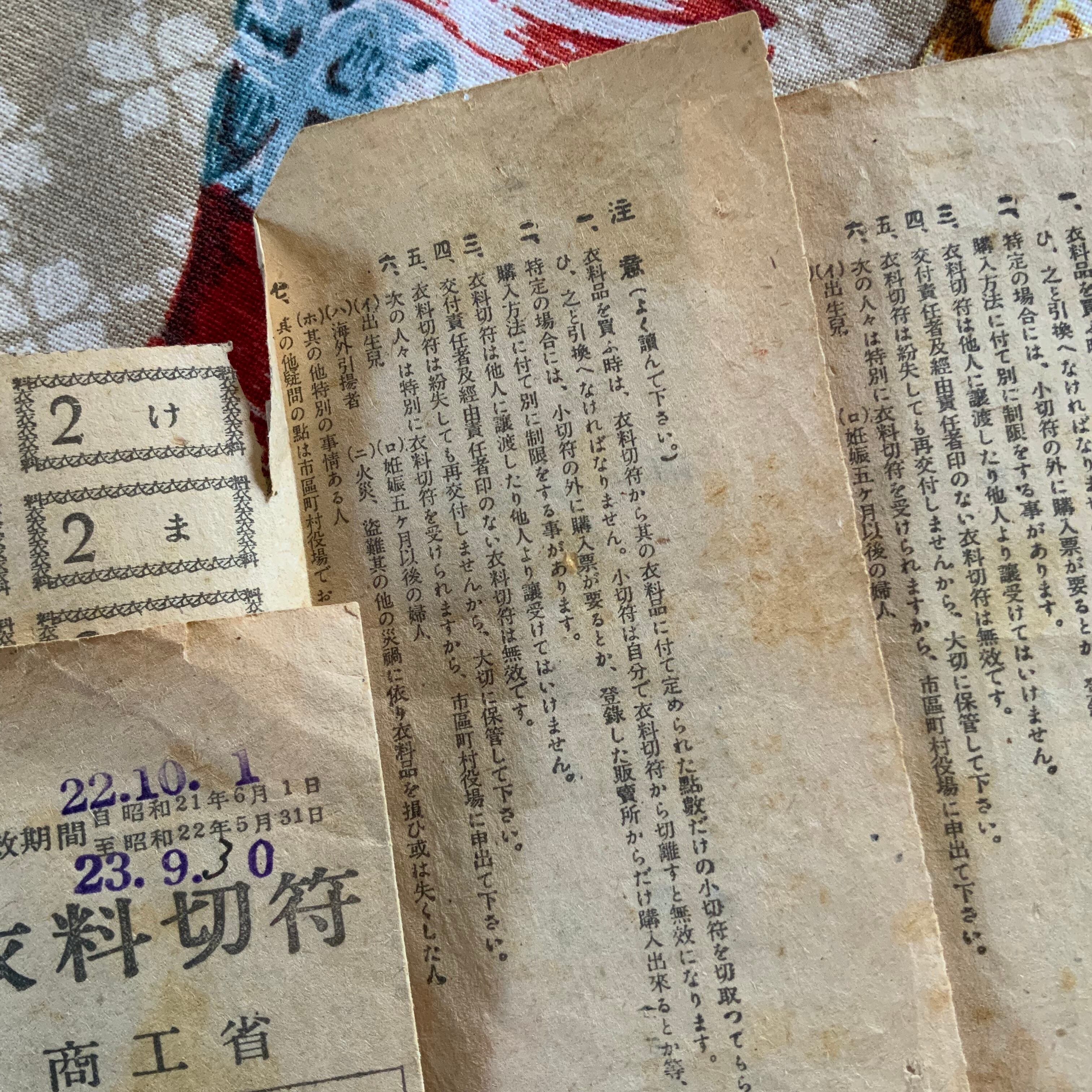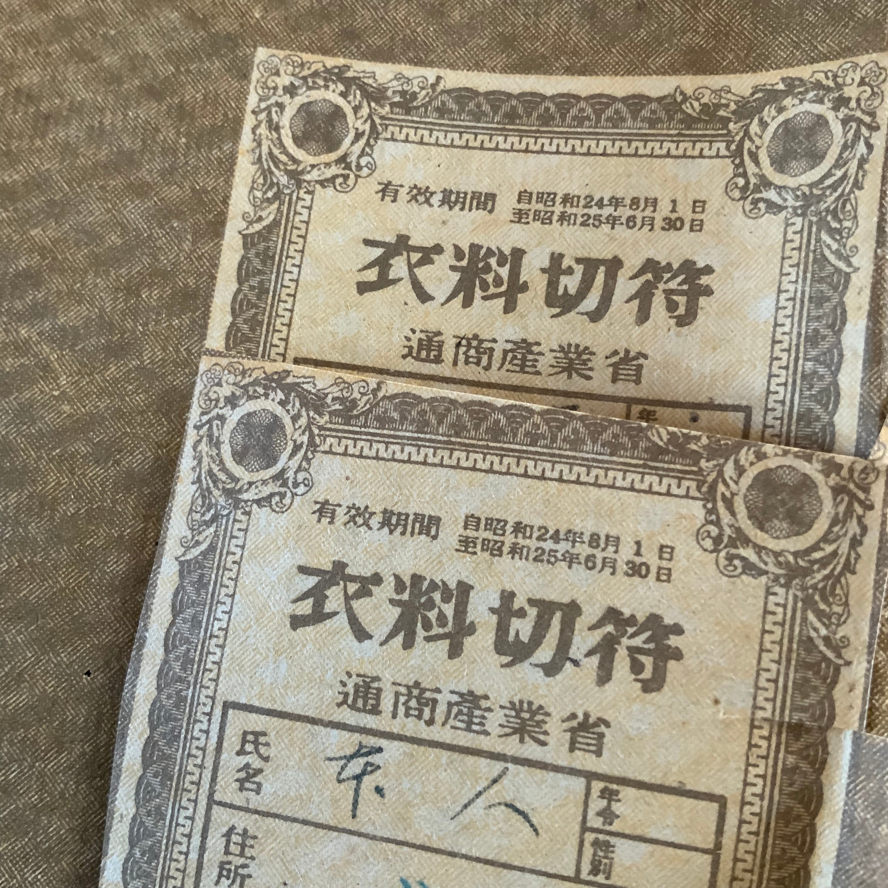 1948年「家庭用品購入通帳」のほかは、衣料切符です。