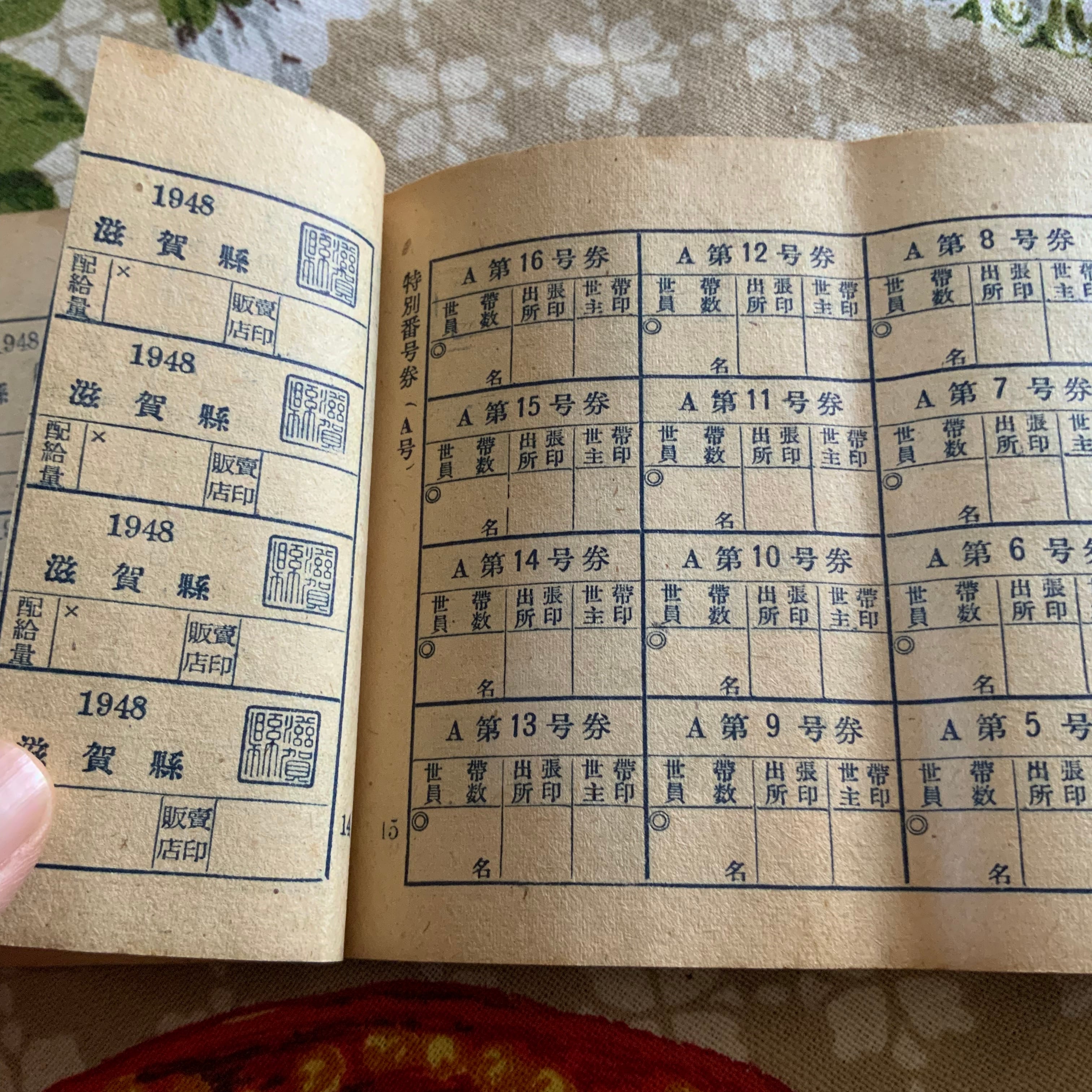 「みそ」券は全然へっていないのに、「しょうゆ」券は全部ないです。滋賀県は味噌よりしょうゆを使うお宅が多いのでしょうか。味噌は自家製だったのでしょうか。それとも味噌の配給自体がないのかもしれません。