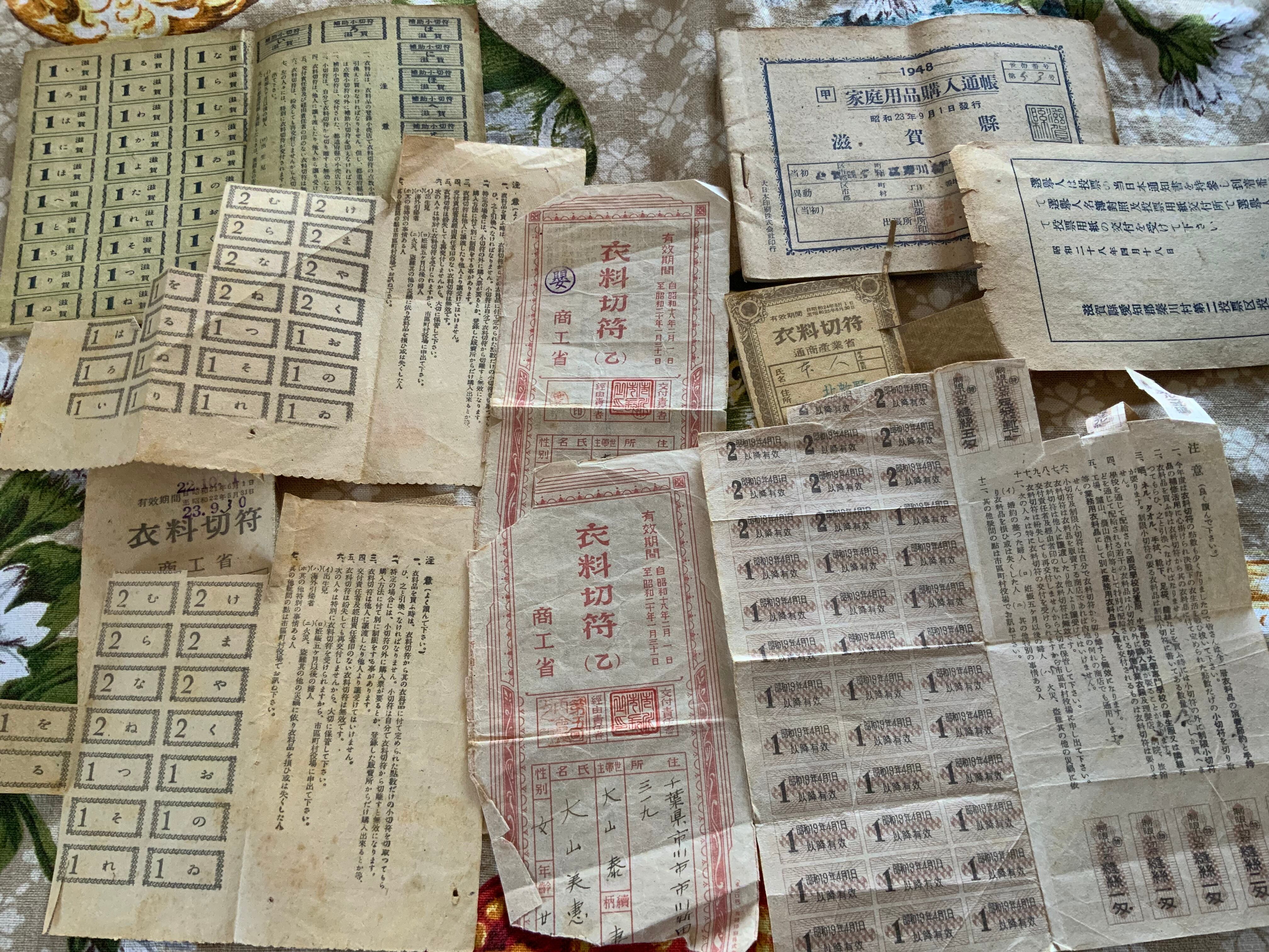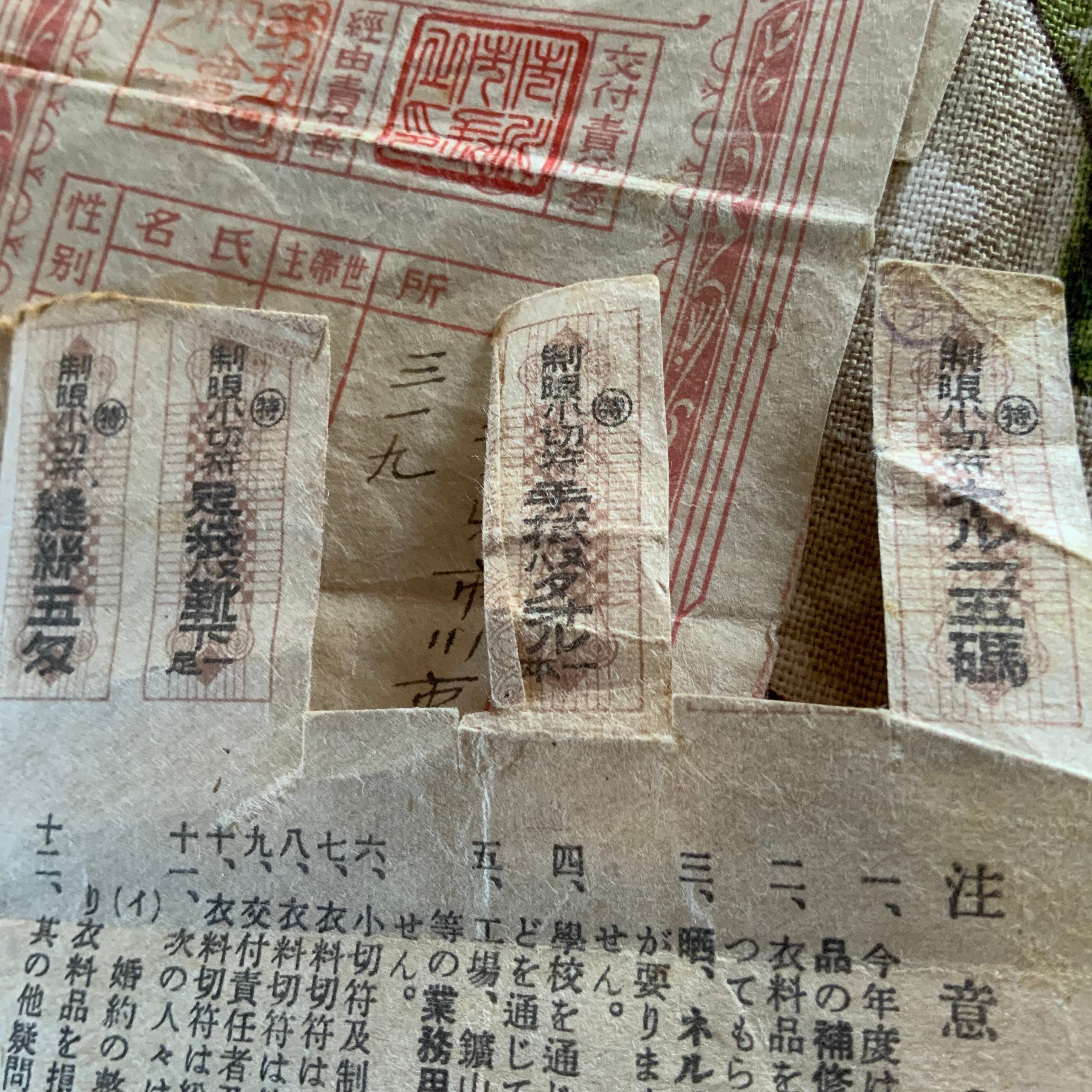 配給切符の山です。大戦末期〜戦後間も無い頃