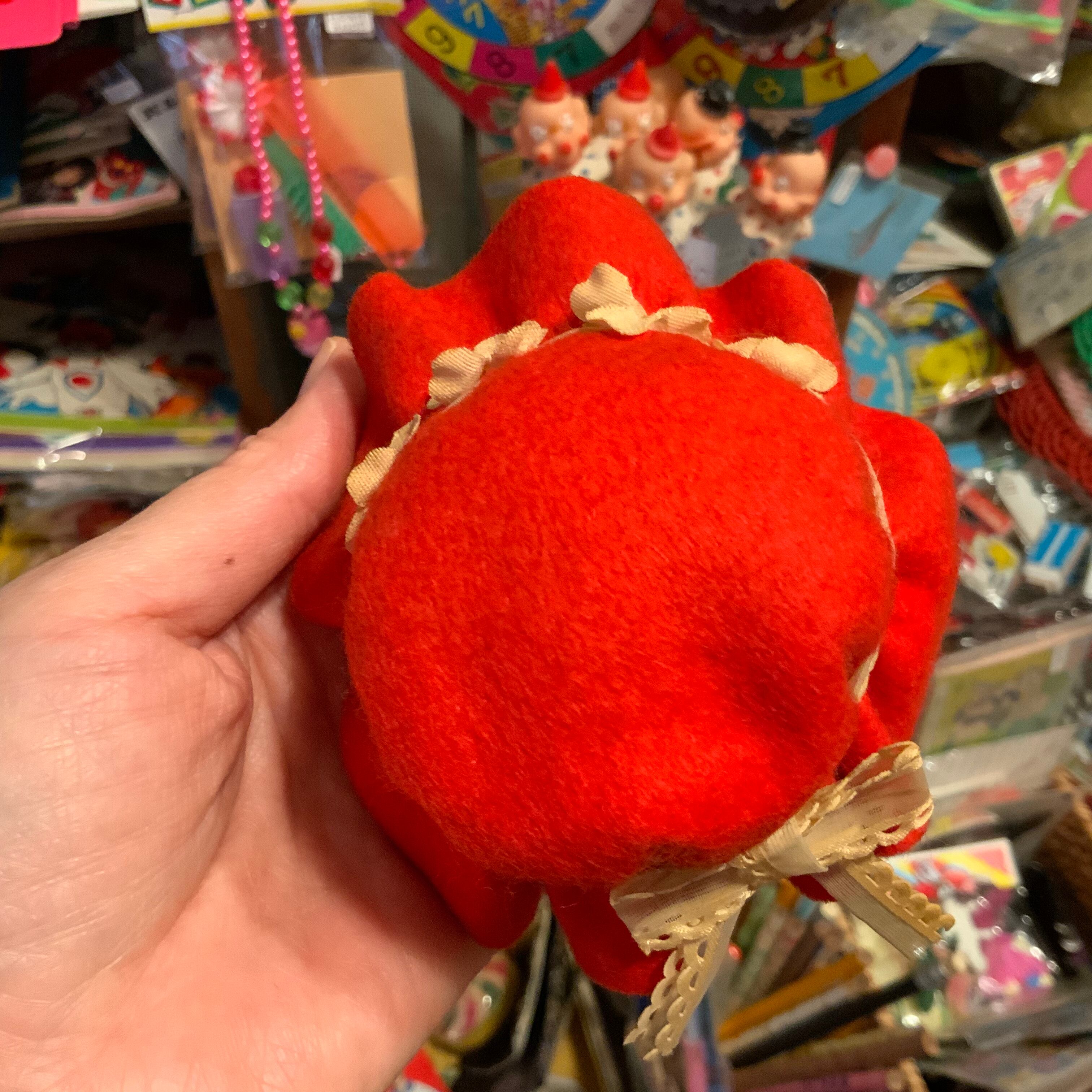 ・赤いフリフリ帽 頭まわり約22センチほど、深さ約3センチほど