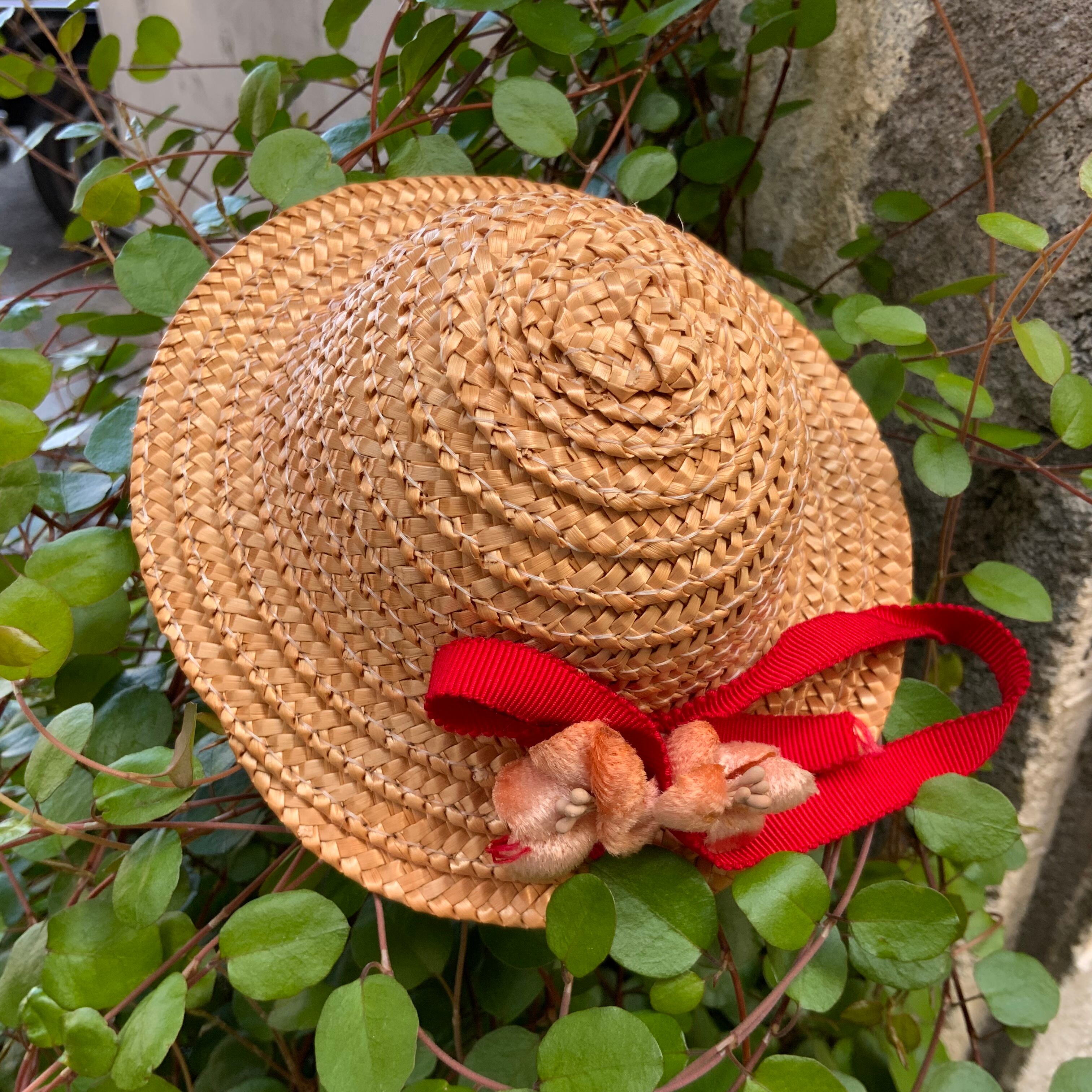 ・赤いリボンの麦わら帽 頭まわり約26センチほど、深さ約4.5センチほど