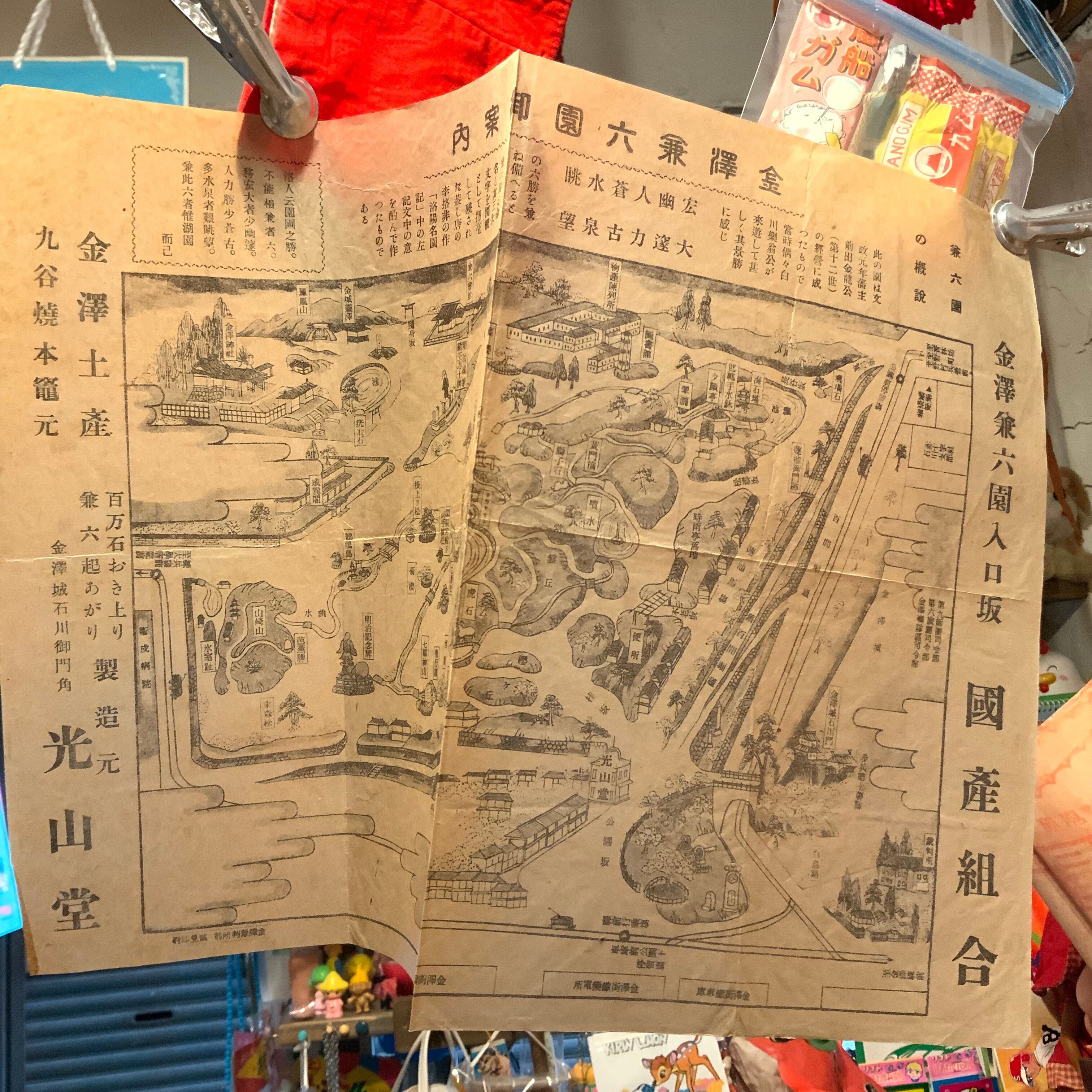 戦前「金澤兼六園」「伊勢大神宮」案内地図2枚セット。市街地のようすも描かれてて楽しいよ!